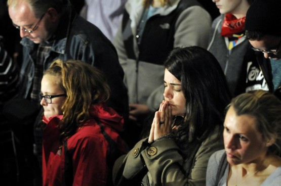 Commozione anche tra le centinaia di persone nell’affollatissimo auditorium di Newtown dove si è svolta la veglia per commemorare le vittime della Sandy Hook Elementary School. Mentre il presidente Obama faceva l’elenco delle vittime, nella sala si sentiva l’eco di molti singhiozzi di pianto. Obama ha anche tentato di smorzare un po’ la tensione ricordando un bimbo della Sandy Hook Elementary School incontrato poco prima e che gli ha detto di non aver avuto paura perchéconosceva il karate.