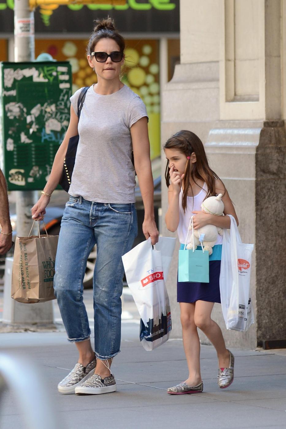 Katie HolmesJune 22, 2014: Katie Holmes and her daughter Suri Cruise are seen making funny faces while heading back home after doing some shopping at Scholastic Store in Soho New York City.Inf/LaPresseOnly ItalyRef: infusny-160|sp