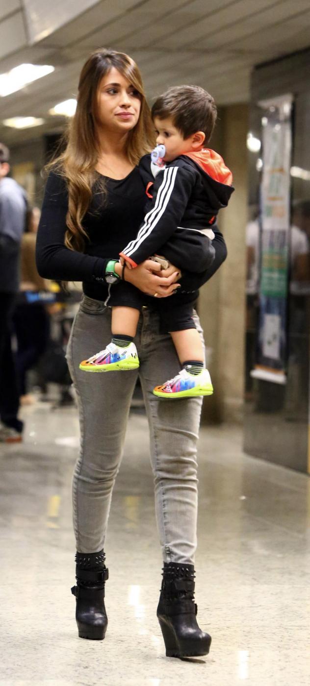 Antonella Roccuzzo (moglie Messi)Fifa Soccer World Cup - Brazil 2014 - Lionel Messi wife ANTONELLA ROCCUZZO with their little son THIAGO arriving to the Stadium Estadio Mineirao for the Match Argentina (1) Vs IRAN (0) Messi did the goal , and dedicate it to his son THIAGO - Belo Horizonte - Brazil (BRA) - 22 Jun 2014 PikoPress/LaPresseOnly Italy