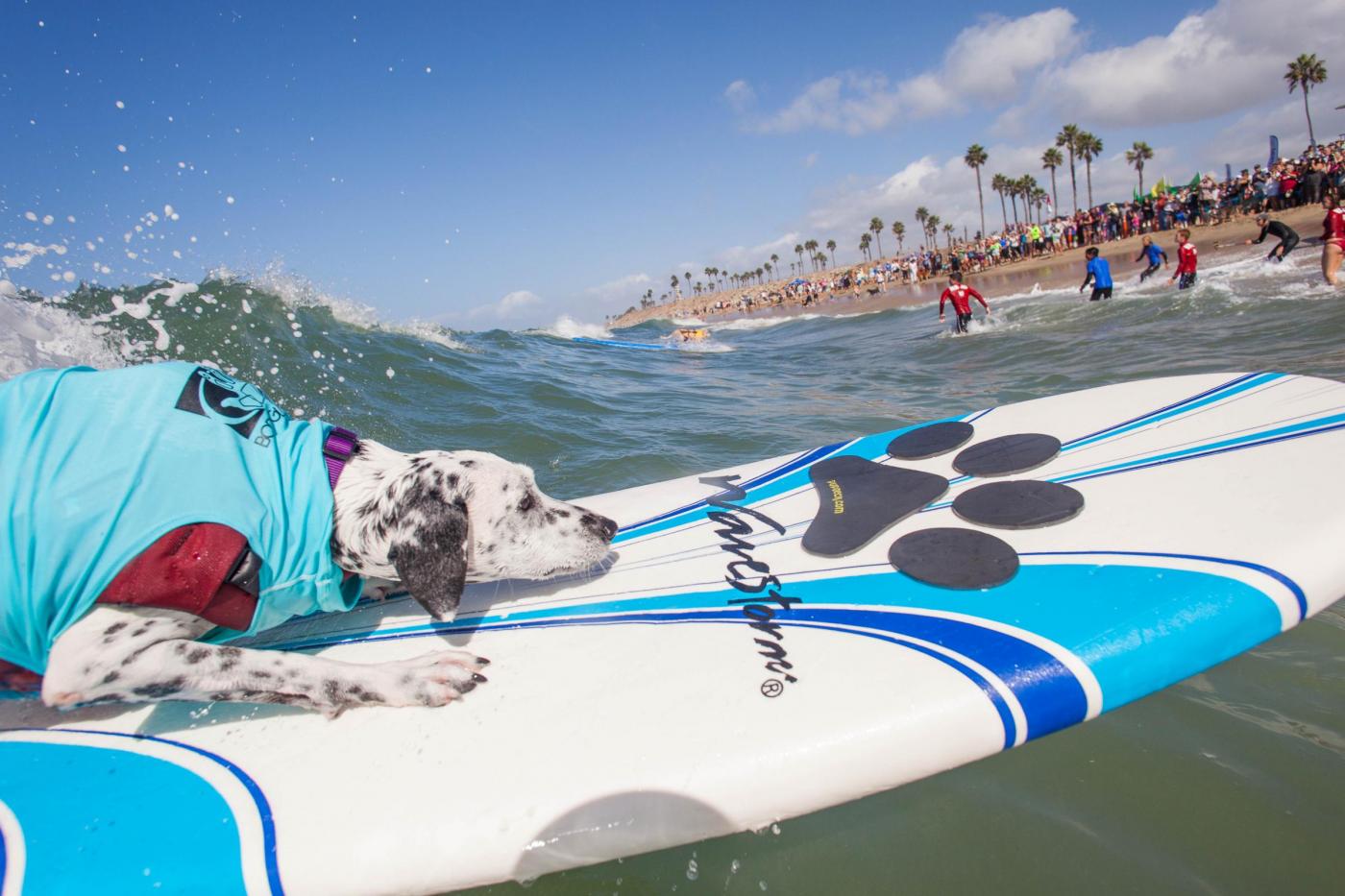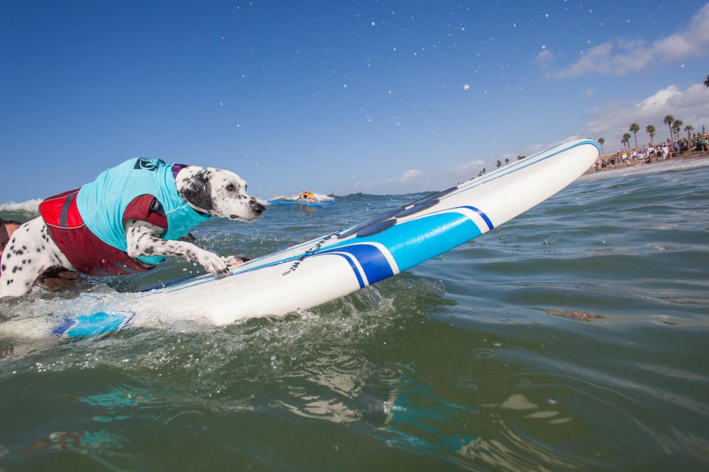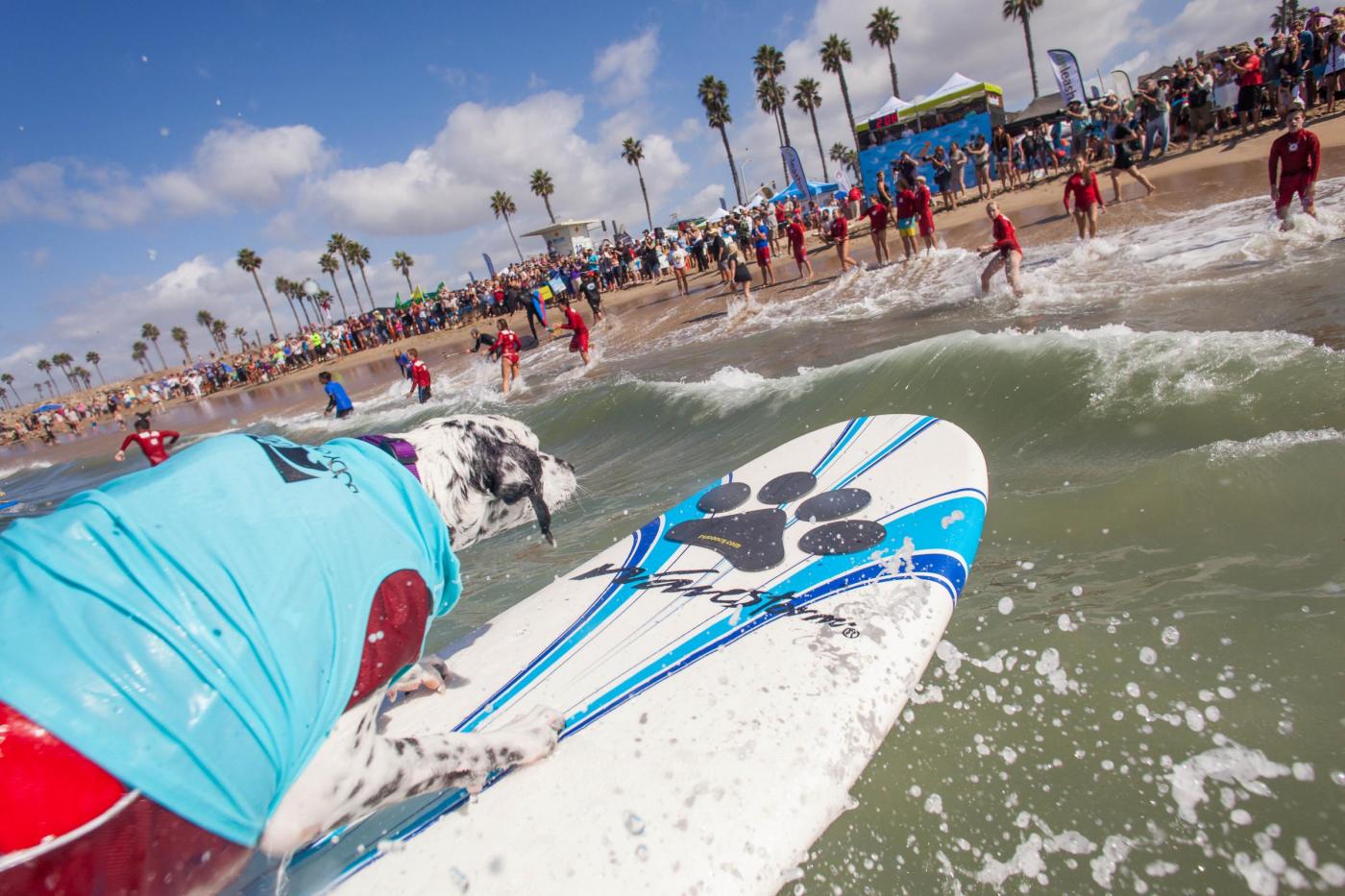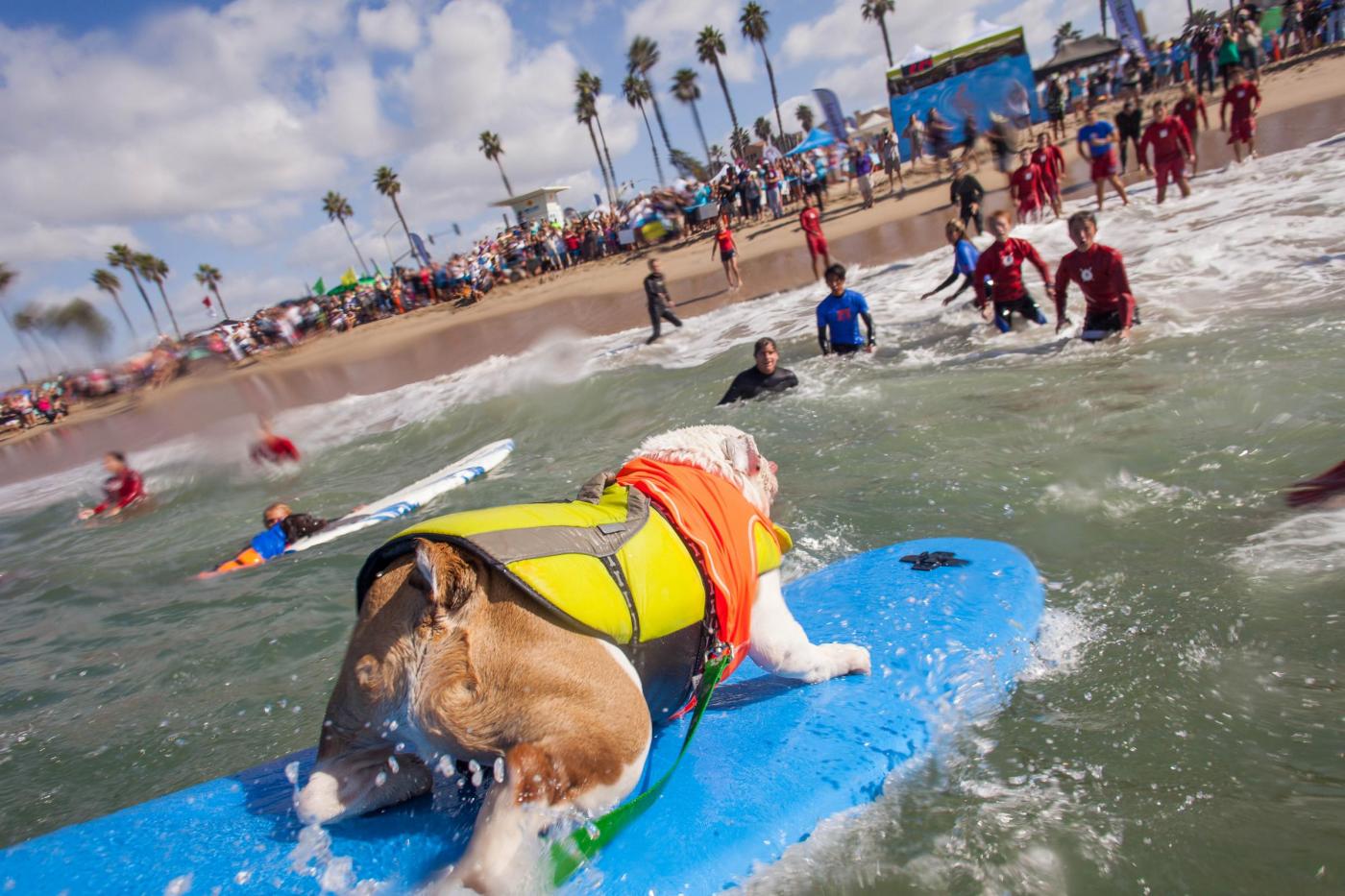 Sulla spiaggia di Huntington Beach in California, è andata in scena la sesta edizione della Surf City Surf Dog, gara in cui si sfidano dei cani surfisti.