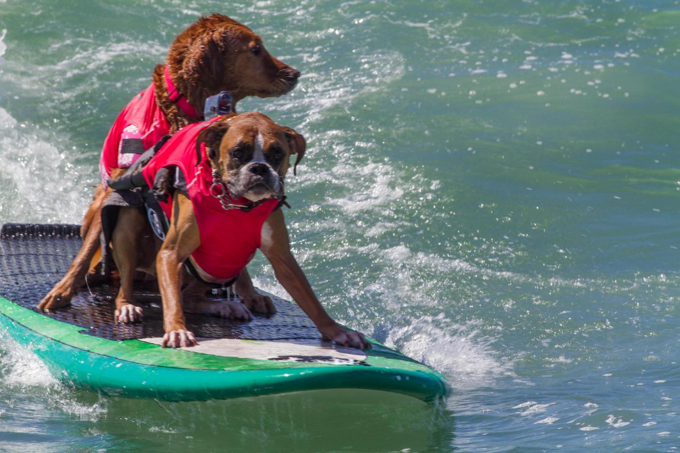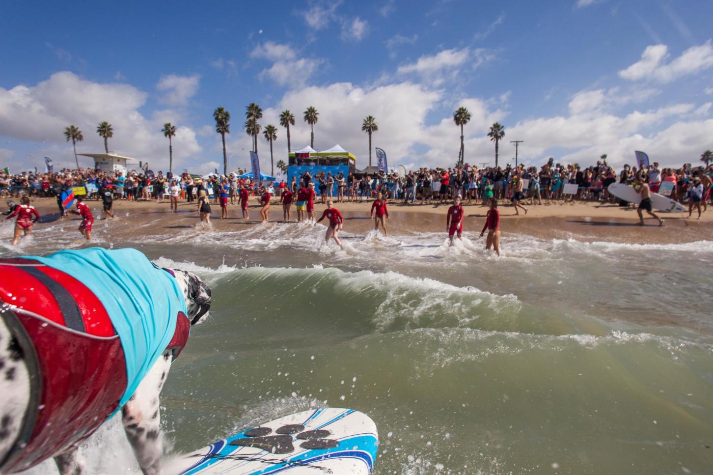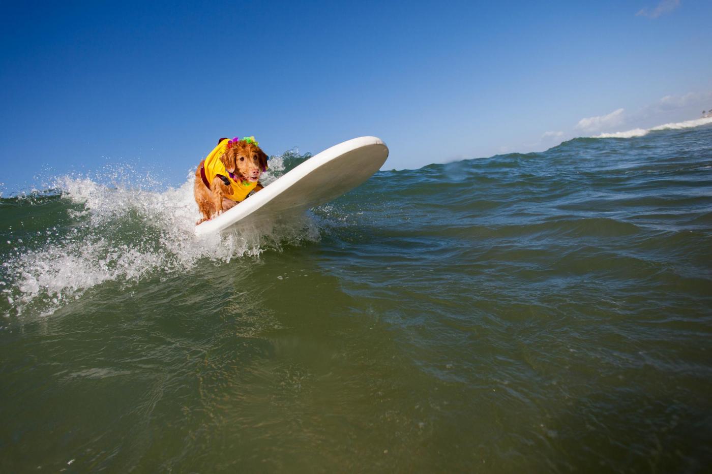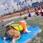 Sulla spiaggia di Huntington Beach in California, è andata in scena la sesta edizione della Surf City Surf Dog, gara in cui si sfidano dei cani surfisti.