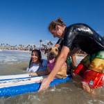Sept. 28, 2014 - CA, US - World Famous Unleashed by Petco Surf City Surf Dog Competition Dogs came from all over the country to compete in the rough waters off Huntington Beach, CA. Some participants came from as far as BRASIL. The beach was crowded with on lookers, dog lovers, and surfers alike. There were multiple categories from small dogs to X-large..Seen here:.Torri the dog. Lapresse Only italy