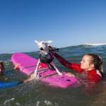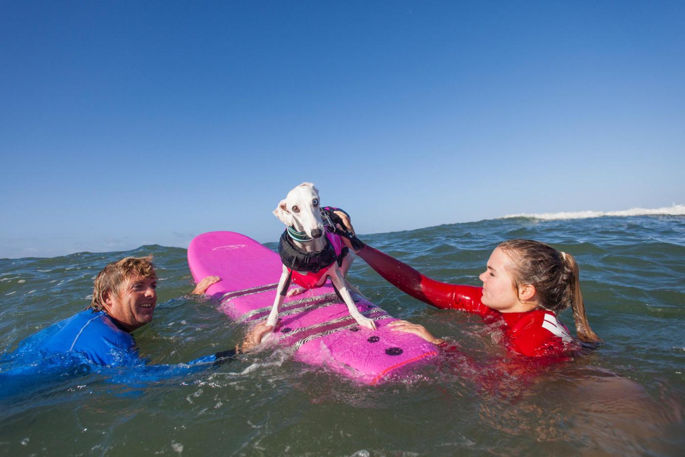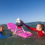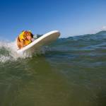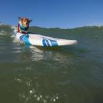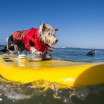 Guardando le foto, non è che questi poveri cani sembrano essere particolarmente felici di cavalcare le onde su una tavola da surf. Ecco le foto, a voi il giudizio (LaPresse)