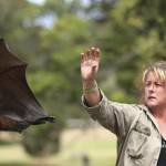 Wildlife carer Justine Coplin releases a Grey Headed Flying Fox in Centennial Park in Sydney, Australia, Wednesday, Feb. 5, 2014. Each year thousands of native wildlife are rescued by volunteers when anti bird netting thrown loosely over fruit trees entangles birds, bats, and reptiles. The Grey Headed Flying Fox is classified as Vulnerable to extinction by the NSW Department of Environment & Heritage.(AP Photo/Rob Griffith)