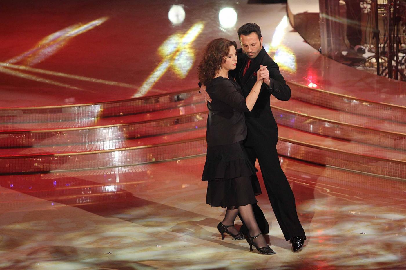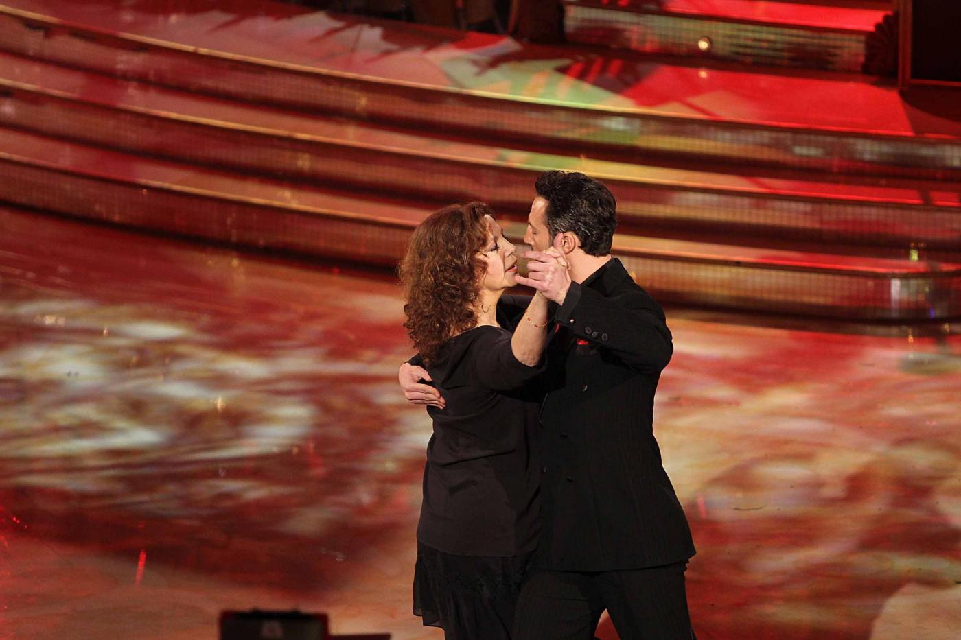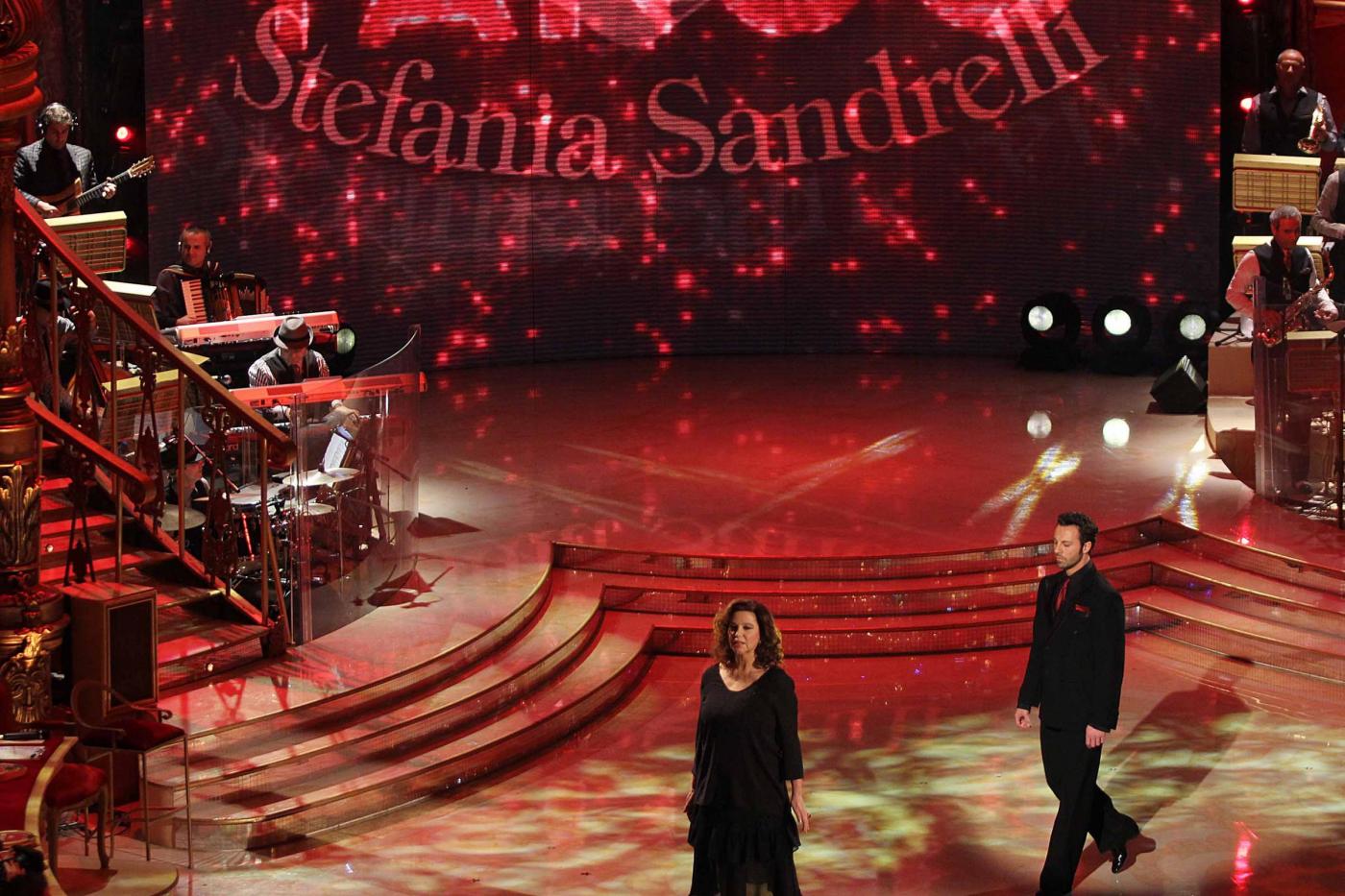 La Sandrelli, nella trasmissione condotta da Milly Carlucci e Paolo Belli, è stata protagonista dello spazio “Ballerina per una notte” e si è esibita insieme a Roberto Imperatori (foto LaPresse):