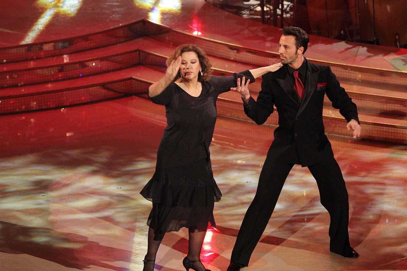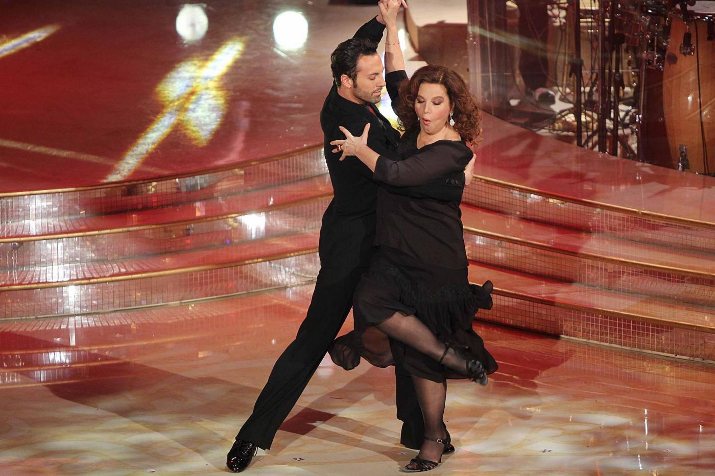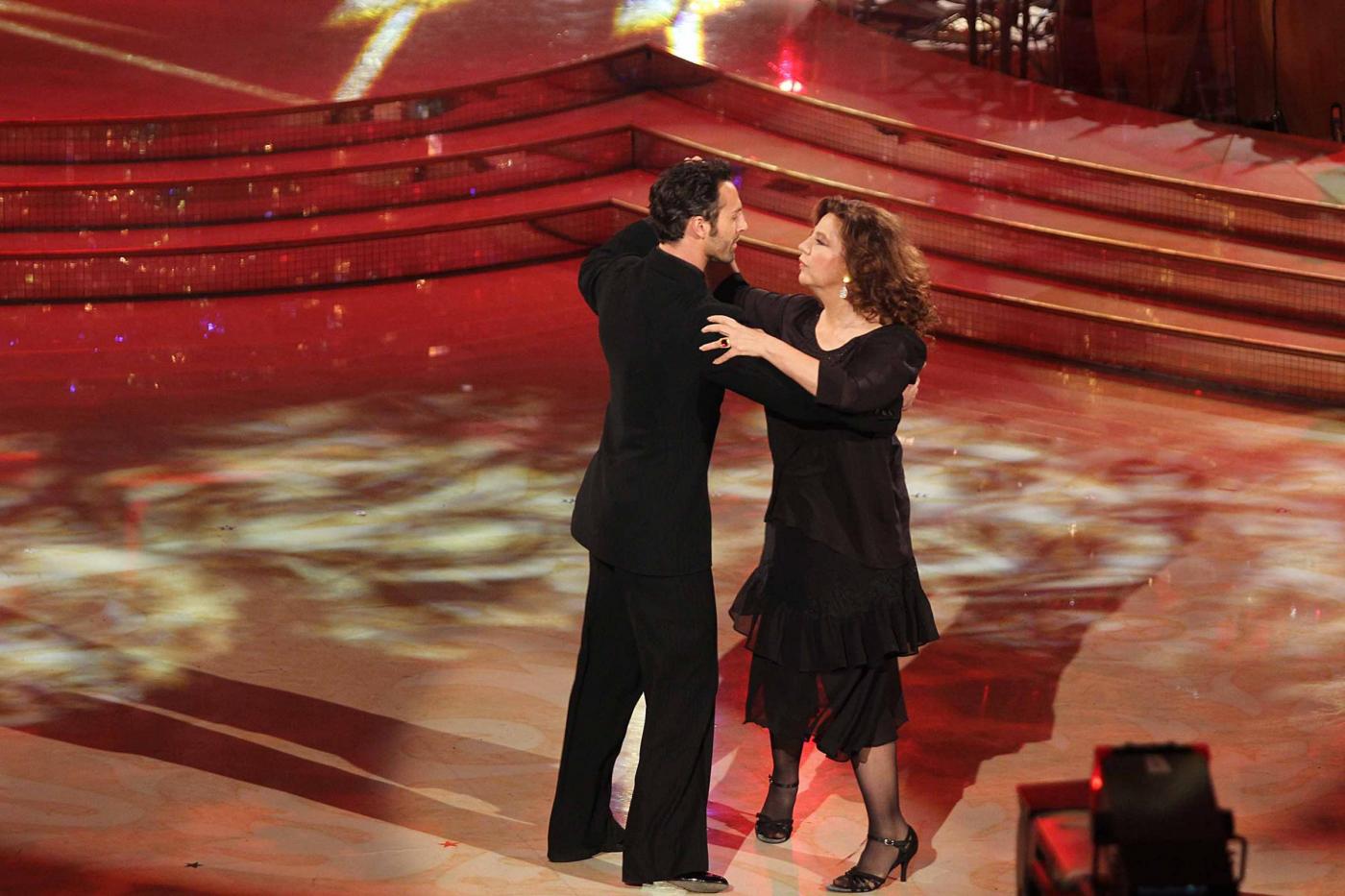 La Sandrelli, nella trasmissione condotta da Milly Carlucci e Paolo Belli, è stata protagonista dello spazio “Ballerina per una notte” e si è esibita insieme a Roberto Imperatori (foto LaPresse):