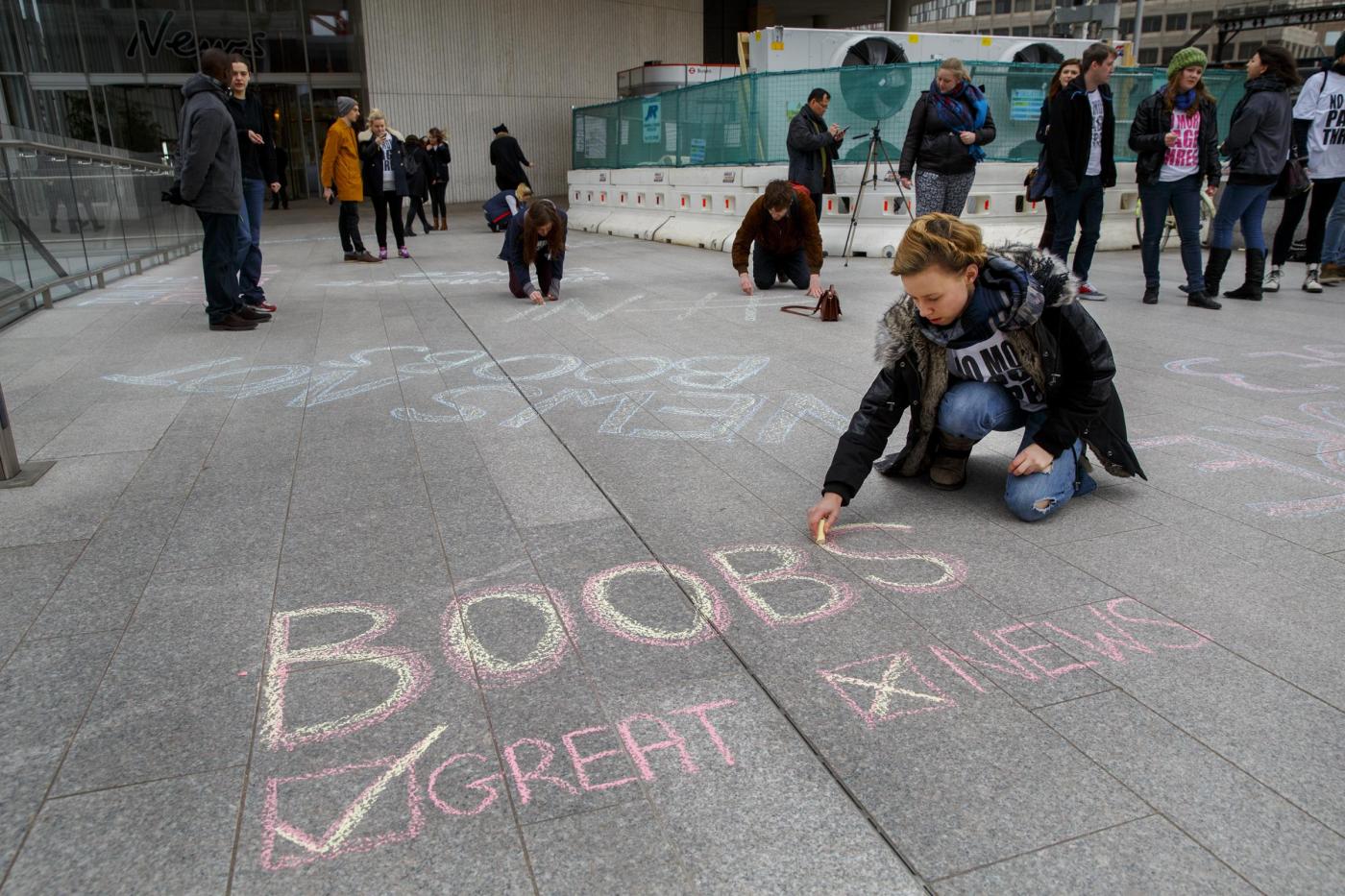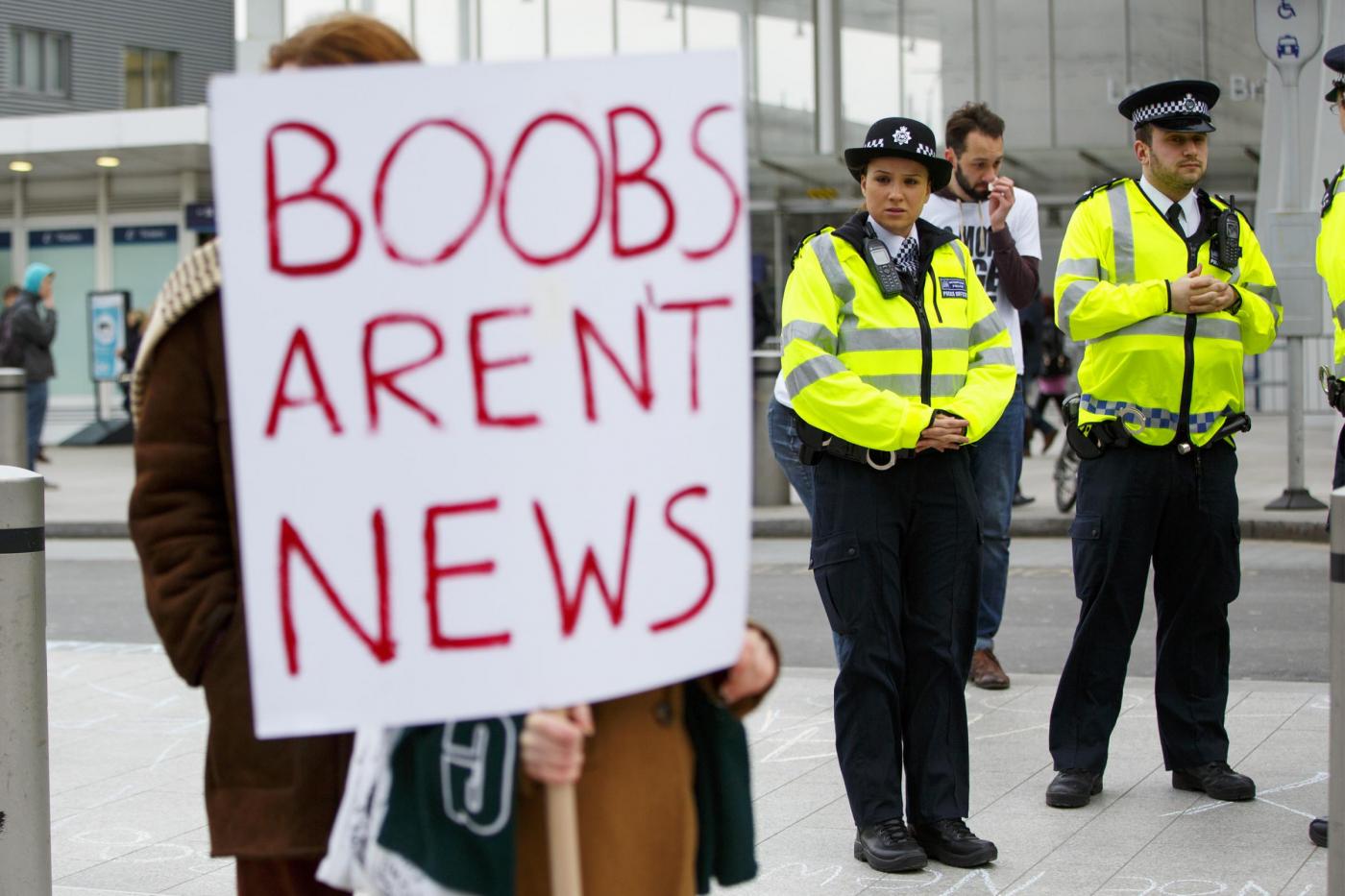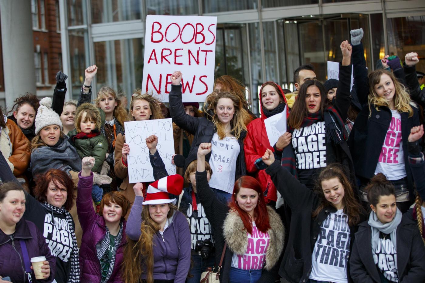 Londra, protesta contro la decisione del Sun di eliminare la pagina 3London, London, UK - LONDON, UK. ''No More Page 3'' campaigners protesting against The Sun's decision to bring the 'Page 3' back after a week, outside News UK HQ in central London ZumaPressLaPresse -- Only Italy