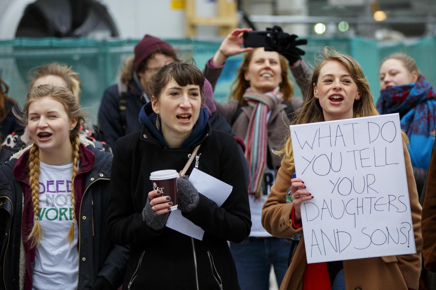 Le foto della protesta sotto la sede del Sun (LaPresse)