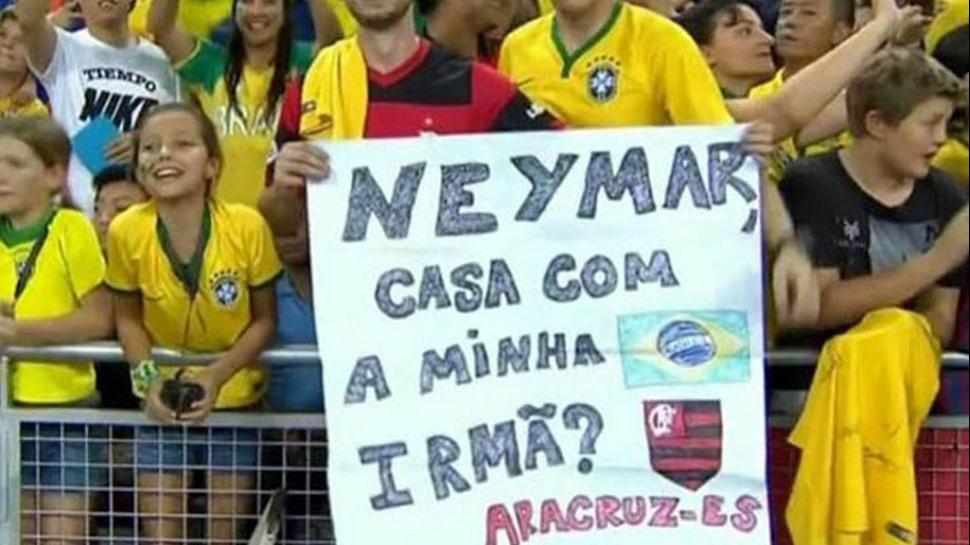 La proposta del fanatico al campione brasiliano è avvenuta durante la partita Brasile-Giappone. L’uomo ha alzato uno striscione fra gli spalti con su scritto: “Neymar, ti sposi con mia sorella?”. Ora non resta che attendere la risposta del diretto interessato, visto e considerato che la ragazza è tutta’altro che poco attraente.