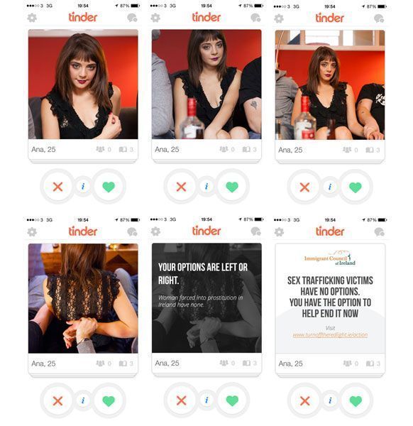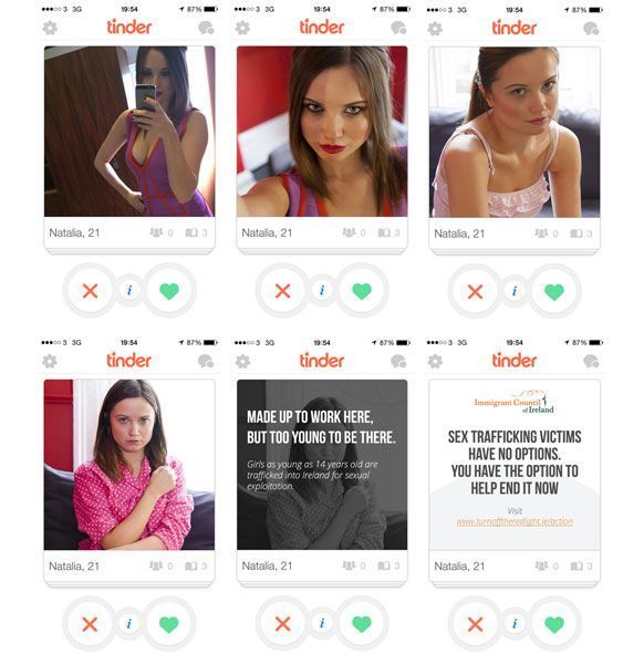 Il messaggio fa parte di una campagna contro la tratta sessuale organizzata dall’agenzia pubblicitaria eightytwenty in collaborazione con il Dipartimento sull’immigrazione irlandese, ed assume un significato maggiore proprio perché lanciato proprio su Tinder.