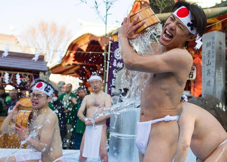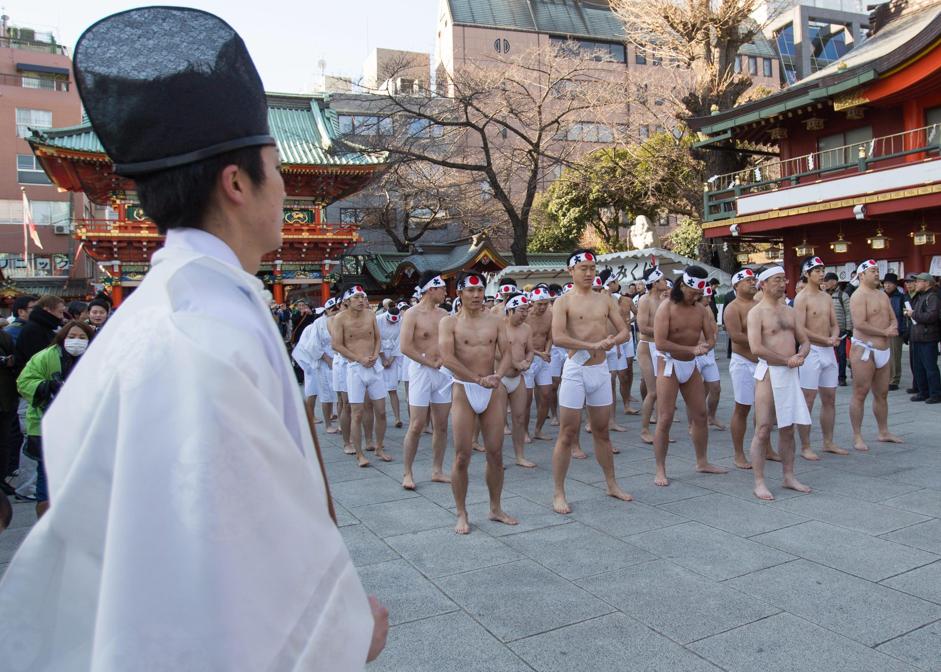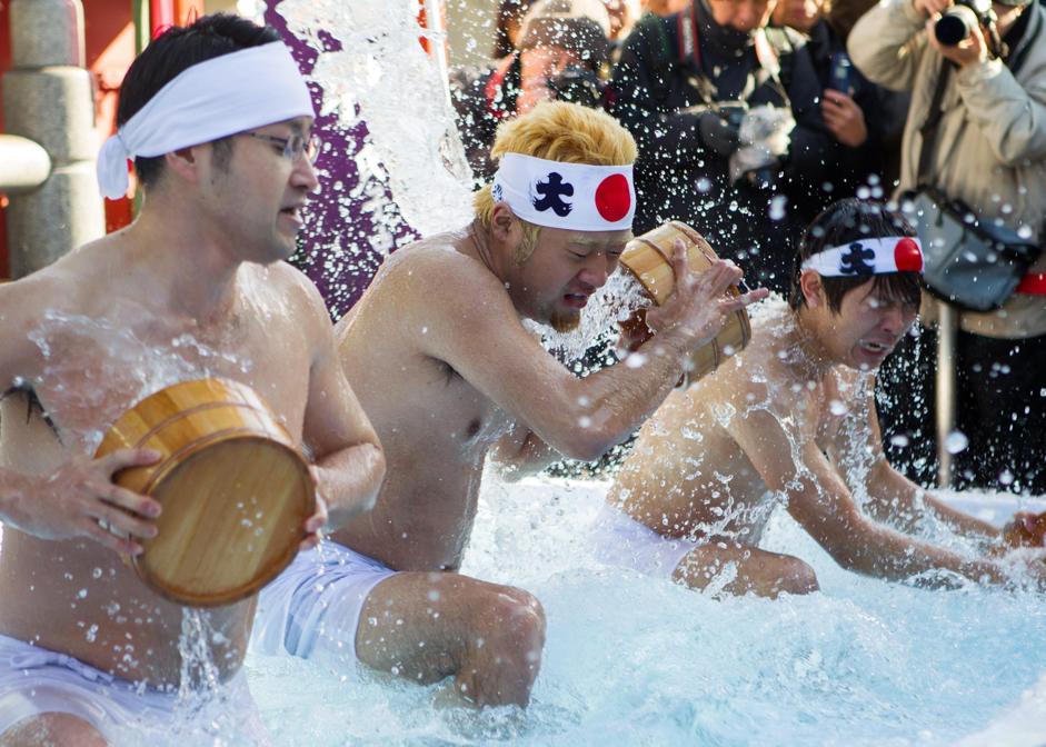 TOKYO – Per propiziare la buona salute, presso il santuario di Kanda a Tokyo, ogni inverno circa 50 fedeli si gettano addosso l’acqua gelata.