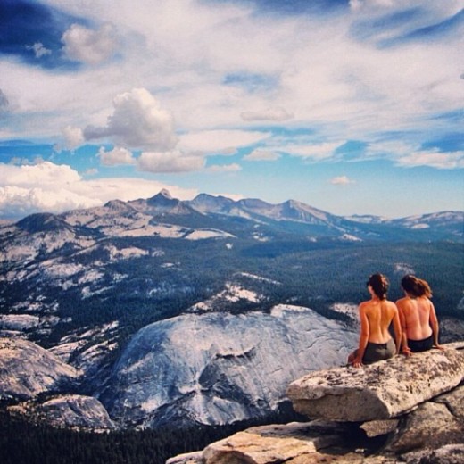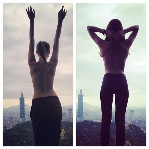 L’idea è quella di farsi immortalare in viaggio, a contatto con la natura, senza il reggiseno. Scegliendo di posizionare la macchina fotografica alle loro spalle per tenere alla larga i voyeur.