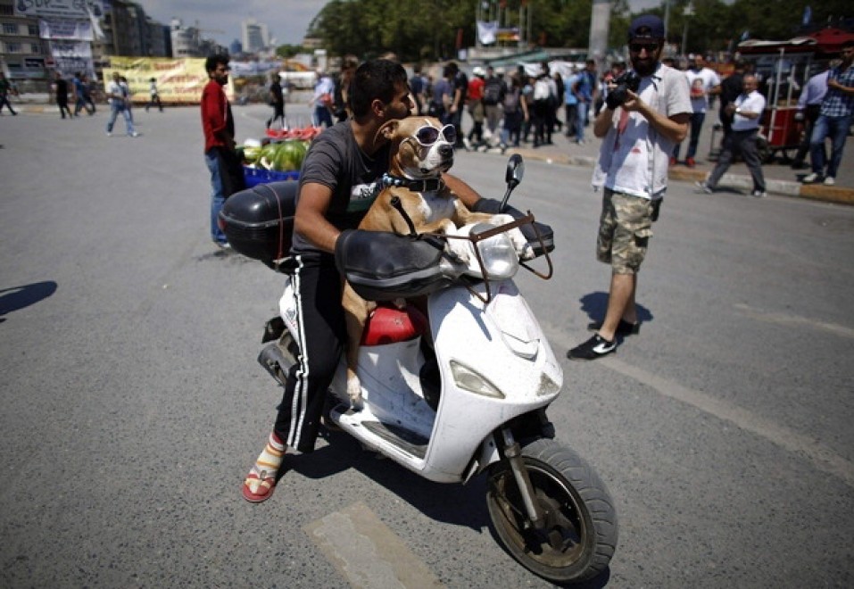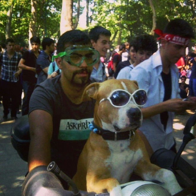 L’animale è stato definito ‘The riot dog of Instabul’ (“il cane della rivolta”) e gli è stato attribuito il termine “hipster” per via degli occhiali da sole e il collare che indossa. Il cane è molto attaccato al suo padrone che segue in tutte le manifestazioni: