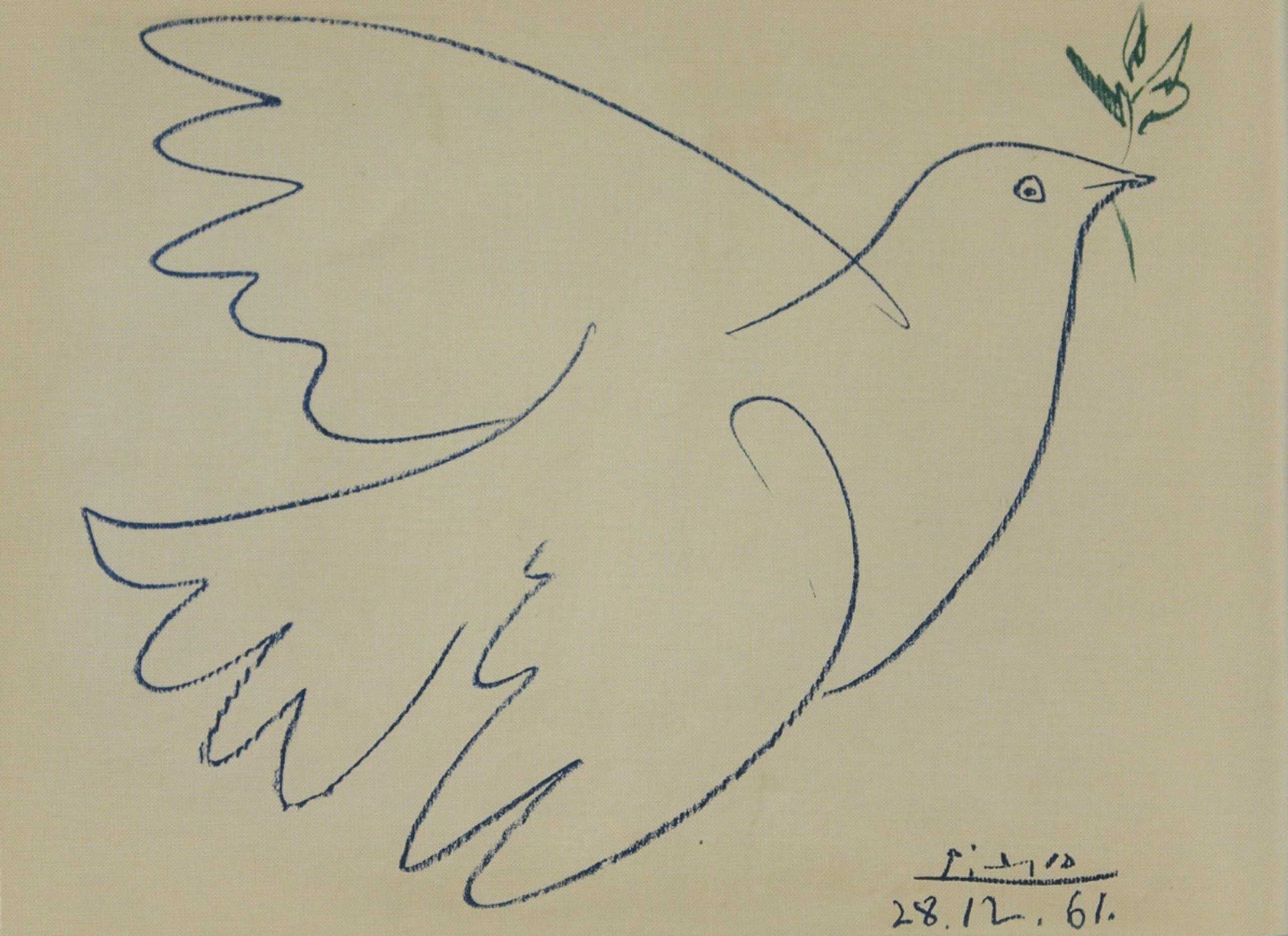 Pablo Picasso. Colomba con ramoscello d'ulivoPablo Picasso. Colomba con ramoscello d'ulivo. Autolitografia, una delle opere esposte nel museo di Parkhomivka, un paesino di 3.000 abitanti sperduto nella campagna ucraina. Il museo fu fondato dal direttore della scuola d'arte del villaggio, Afasani Luniov, che negli anni di Krusciov e Brezhnev accompagno' i suoi allievi in gite d'istruzione in tutta l'Urss, stringendo legami con artisti e curatori di mostre riuscendo a far donare alla scuola numerose e importanti opere d'arte, anche dall'Hermitage. ANSA/US +++ NO SALES - EDITORIAL USE ONLY +++