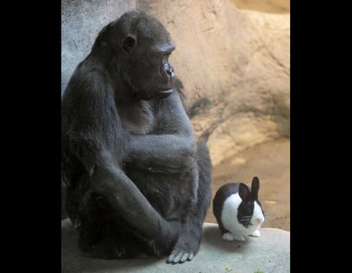ERIE (PENNSYLVANIA, STATI UNITI) – Nello zoo di Erie in pennsylvania, un gorilla femmina di nome Samantha ha adottato Panda, un piccolo coniglio di razza olandese bianco e nero.