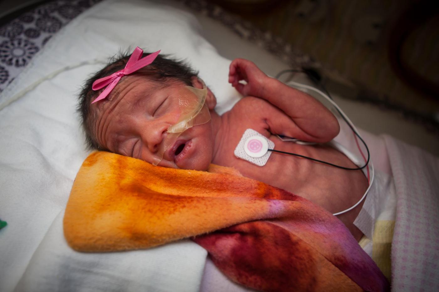 This undated photo provided by the University of Utah Hospital shows one of the quintuplets born over Memorial Day weekend to Salt Lake City couple Guillermina and Fernando Garcia at University of Utah Hospital in Salt Lake City. Garcia's five babies — three girls and two boys — weigh between 2 to 3 pounds each and are expected to have to stay at the hospital for another six weeks. Doctors predict they will grow up completely healthy. (AP Photo/University of Utah Hospital)