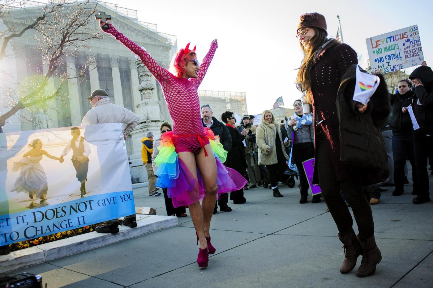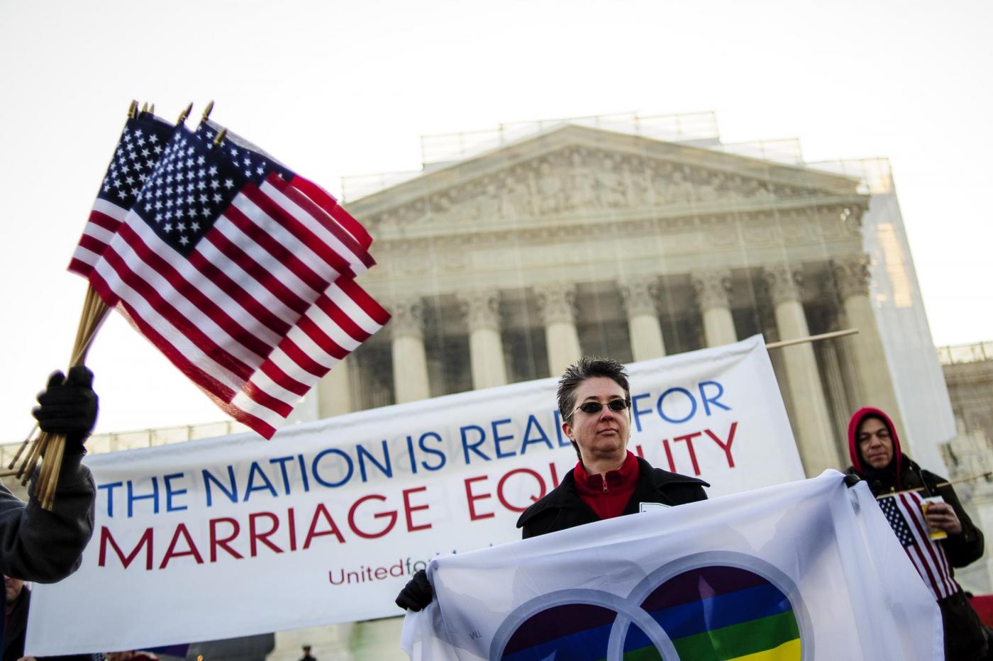 IN USA CRESCE CONSENSO PER NOZZE GAY. Secondo un sondaggio condotto da Pew Research Center a metà marzo, il 49% degli americani è a favore dei matrimoni gay, mentre il 44% è contrario. Dieci anni fa la posizione dell’opinione pubblica era molto diversa: il 58% si opponeva alle nozze tra persone omosessuali, che avevano il sostegno del 33% degli americani. Questo cambiamento non garantisce tuttavia un esito a favore dei matrimoni gay da parte della Corte dominata da conservatori e perfino alcuni attivisti per i diritti degli omosessuali si sono detti preoccupati del fatto che la questione sia stata portata davanti al tribunale troppo presto.