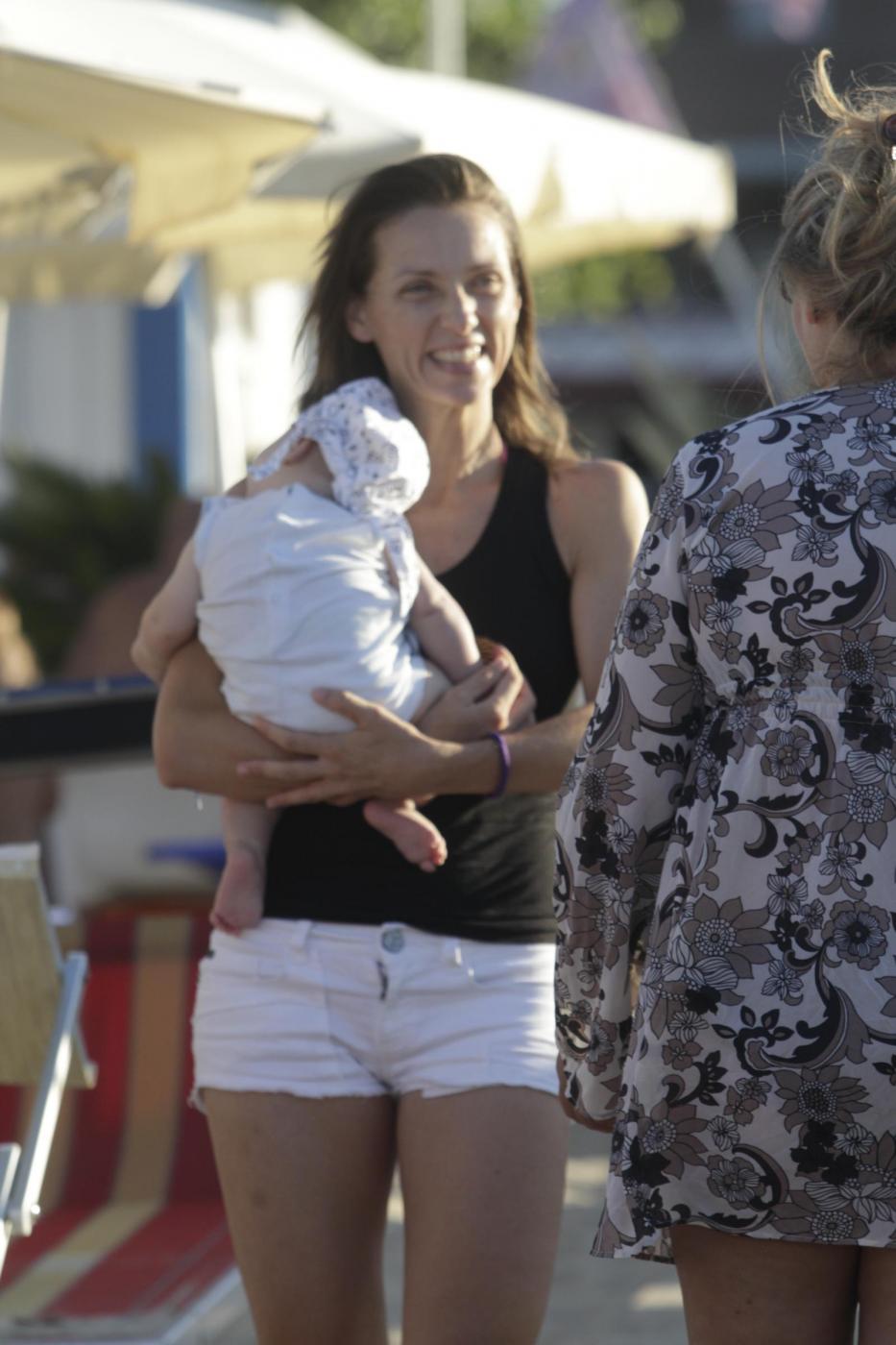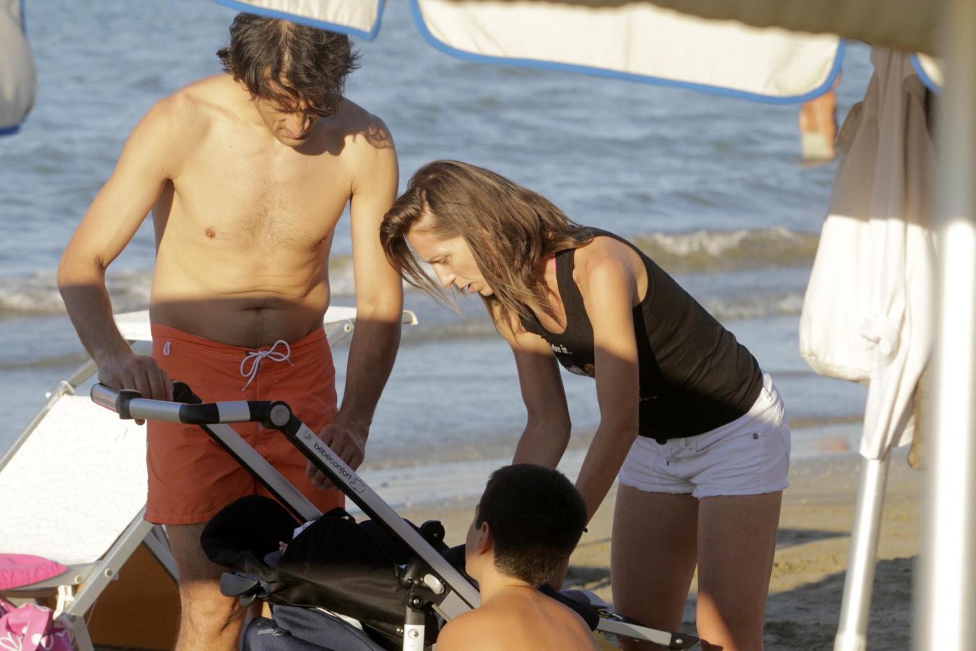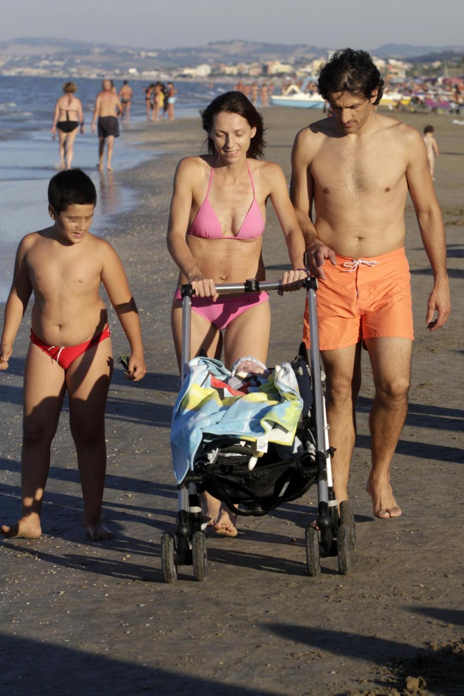 Foto LaPresse12-08-2013 Senigallia, ItaliagossipLa schermitrice Valentina Vezzali oro ai mondiali di scherma con il dream team si concede il riposo sulla spiaggia di Senigallia, che frequenta da bambina, con la famiglia dedicandosi ai figli in particolare all'ultimo arrivato che compirà tre mesi il 16 agostoPhoto LaPresse12-08-2013 Senigallia, ItalygossipValentina Vezzali to the sea in Senigallia