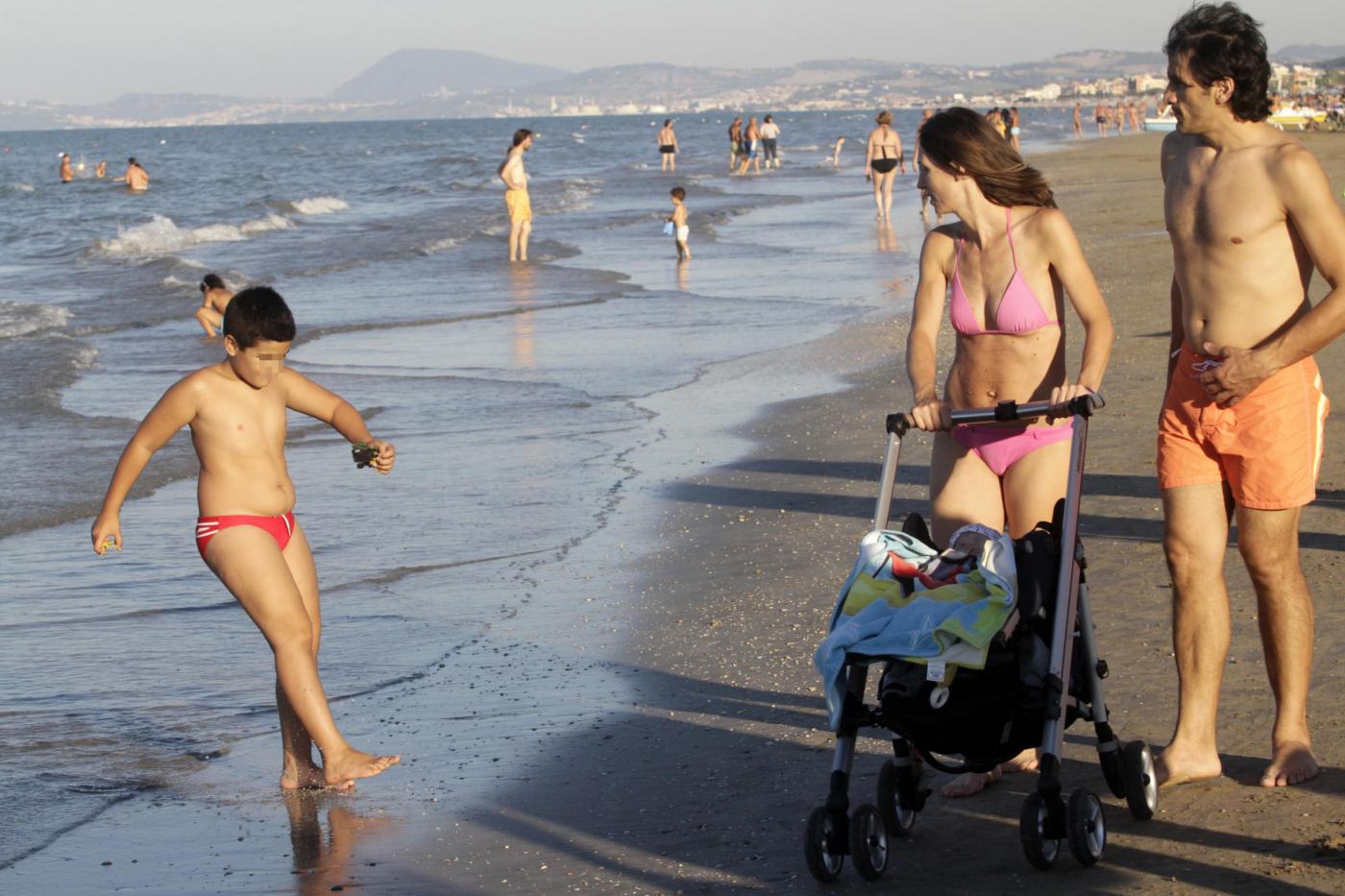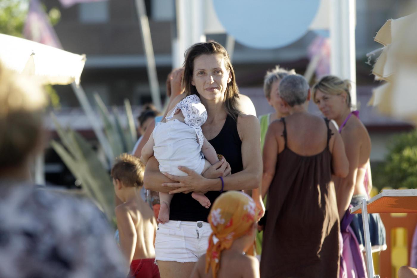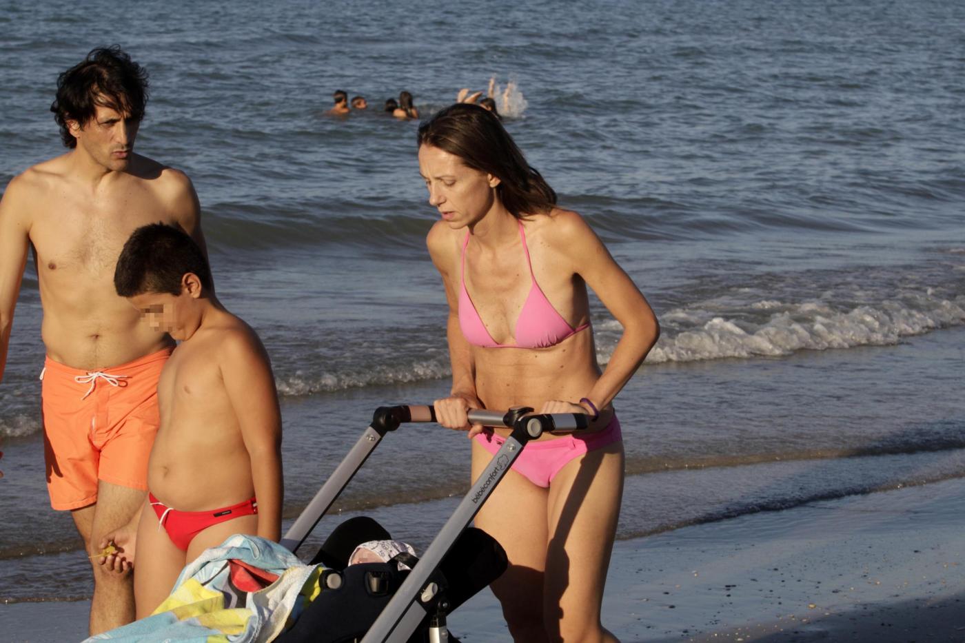 Foto LaPresse12-08-2013 Senigallia, ItaliagossipLa schermitrice Valentina Vezzali oro ai mondiali di scherma con il dream team si concede il riposo sulla spiaggia di Senigallia, che frequenta da bambina, con la famiglia dedicandosi ai figli in particolare all'ultimo arrivato che compirà tre mesi il 16 agostoPhoto LaPresse12-08-2013 Senigallia, ItalygossipValentina Vezzali to the sea in Senigallia