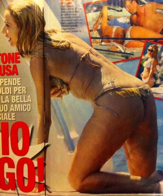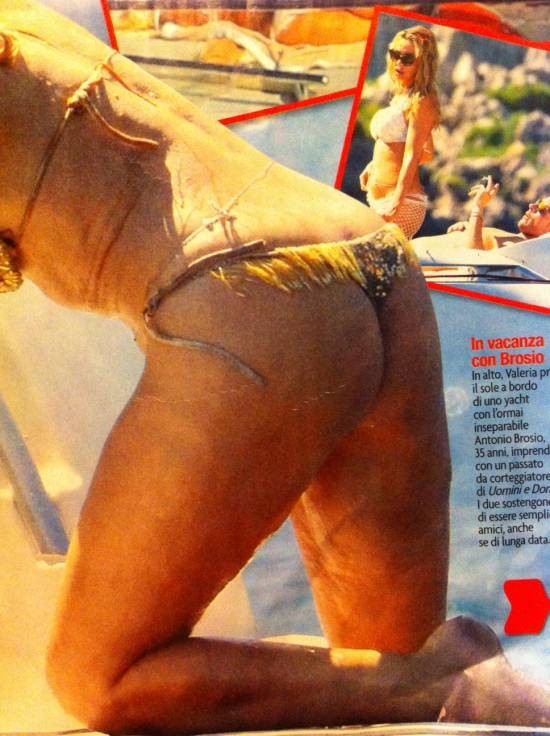 Tuttavia, il lato b di Valeria appare piuttosto appesantito, e il fisico abbastanza fuori forma. E non che debba per forza pensare al fisico perfetto ma, in certi casi, un bikini con una mutanda semplice e non a tanga sarebbe stato decisamente più appropriato e avrebbe coperto, magari, qualche piccola imperfezione in più.