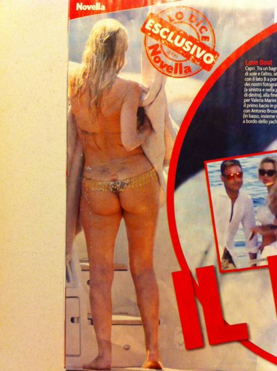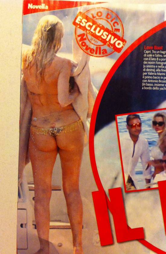 CAPRI – Sembra che, per Valeria Marini, a colare a picco non sia solo il matrimonio ma anche il lato b. La showgirl è stata paparazzata dai fotografi di Novella2000 mentre era a Capri, durante una vacanza insieme all’ormai inseparabile Antonio Brosio, e non si può fare a meno di notare che, se il matrimonio è inesorabilmente fallito, anche la prova costume non sembra essere andata a gonfie vele.