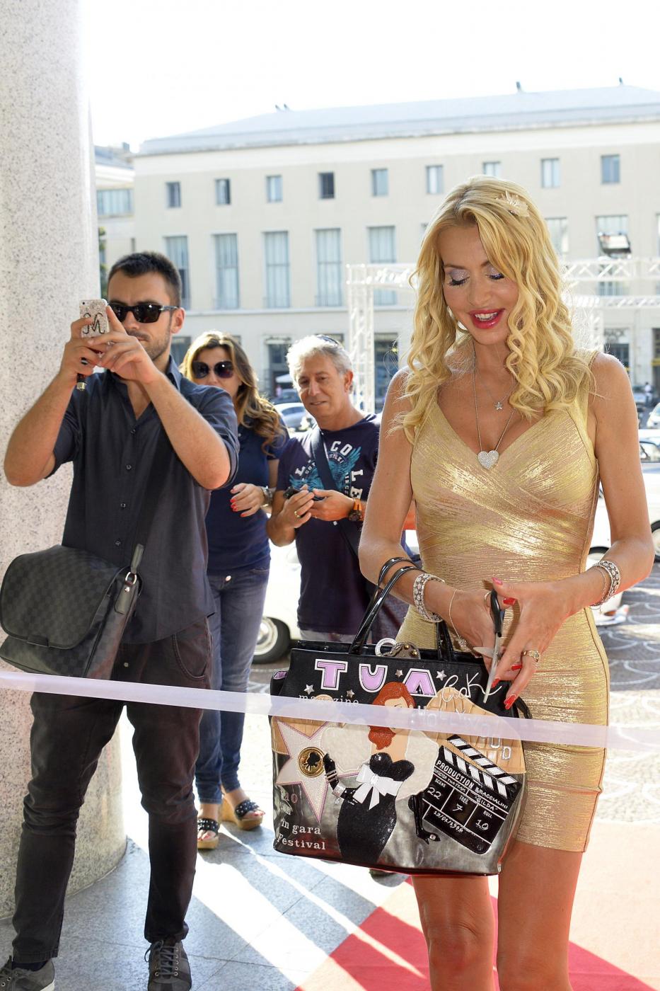 Cinta da uno scintillante abito dorato che non riusciva a trattenere le sue abbondanti forme, Valeria Marini ha fatto il suo ingresso trionfale, con tanto di taglio del nastro, al Palazzo dei Congressi. L’appuntamento anticipa Roma Sposa 2014 che aprirà i battenti a gennaio alla Fiera di Roma.