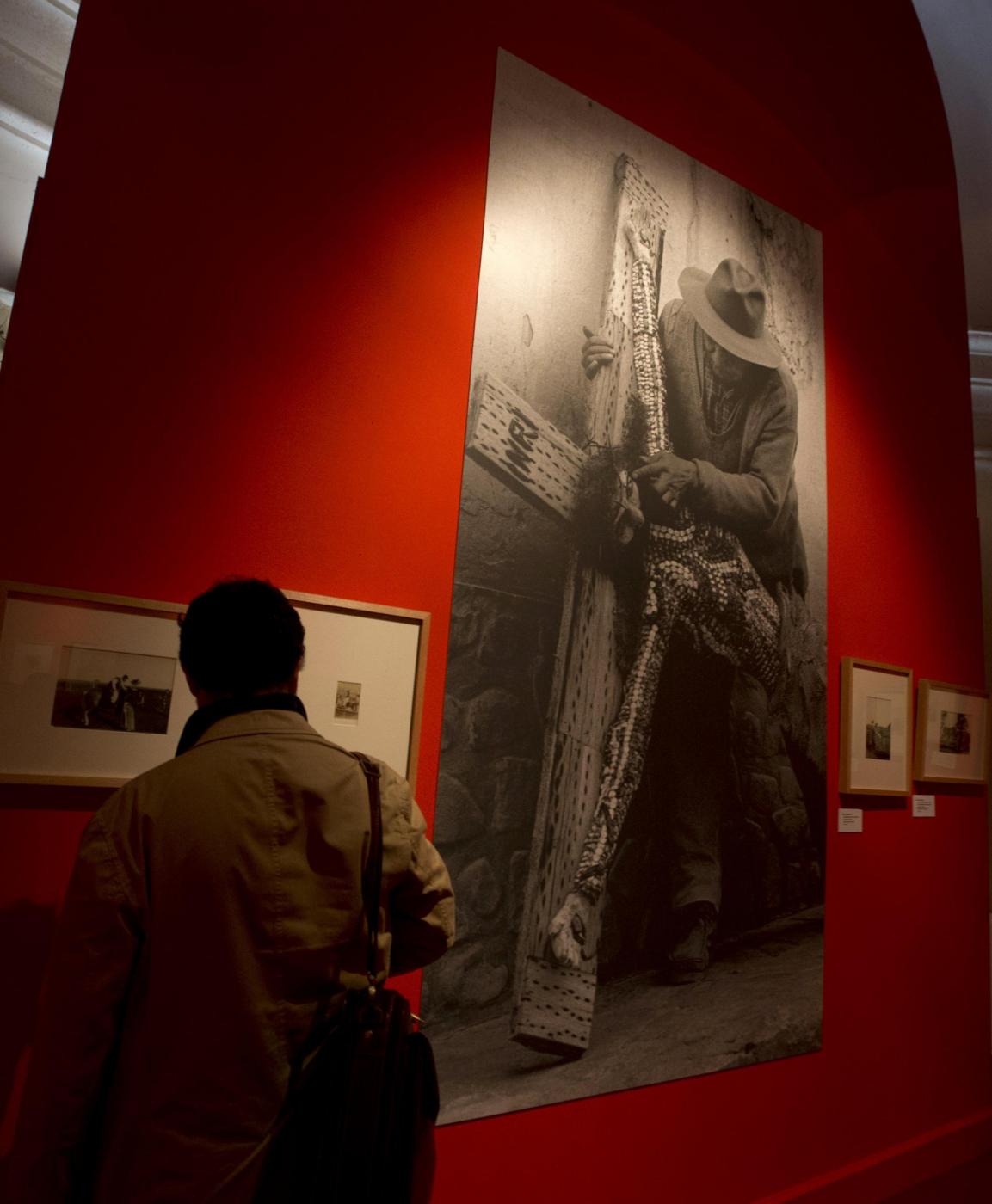 A visitor looks at a photograph during the unveiling of the exhibition "Argentina. The Gaucho: Tradition, Art and Faith", in the Carlo Magno wing of Bernini's colonnade in St. Peter's Square at the Vatican, Friday, May 17, 2013. If Pope Francis is getting a bit nostalgic, all he has to do is slip into St. Peter's Square for a dose of Argentine culture. In a remarkable coincidence, a long-planned exhibit on Argentina's famed gauchos opens Friday in the Vatican's exhibit space just off the piazza. The exhibition will run until June 16, 2013. (AP Photo/Andrew Medichini)