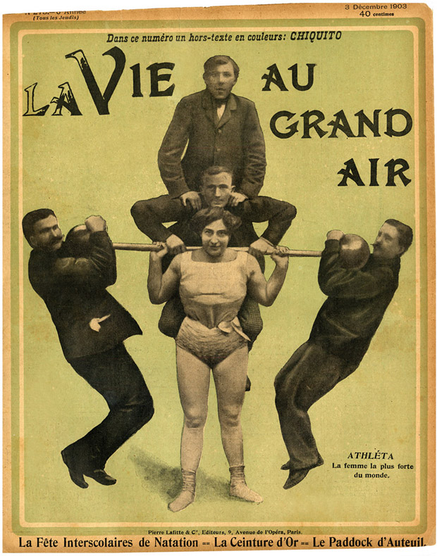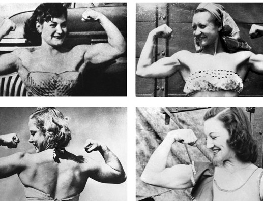 Nel corso degli ultimi 100 anni, l’immagine del fisicamente forte e sicura di sé della donna muscolosa è stato oggetto di derisione e spesso rappresentata, sia in fotografia che in illustrazione, come una dominatrice sexy o al contrario come un manichino asessuato.