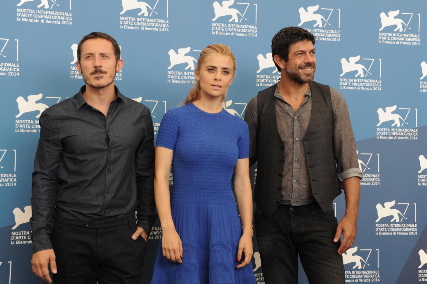 foto Piergiorgio Pirrone - LaPresse 30 08 2014 Lido di Venezia spettacolo 71esima mostra d'arte cinematografica di Venezia Photocall del film Senza nessuna pietà nella foto: Michele Alhaique, Greta Scarano, Pierfrancesco Favino photo Piergiorgio Pirrone - LaPresse 30 08 2014 Venezia Lido 71th Venice film festival Senza nessuna pietà photocall in the photo: Michele Alhaique, Greta Scarano, Pierfrancesco Favino