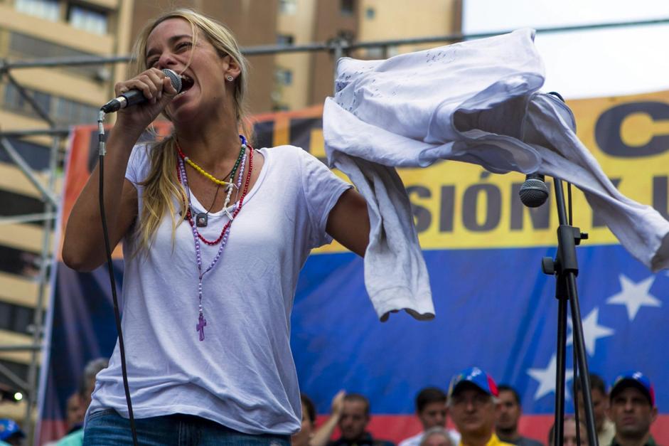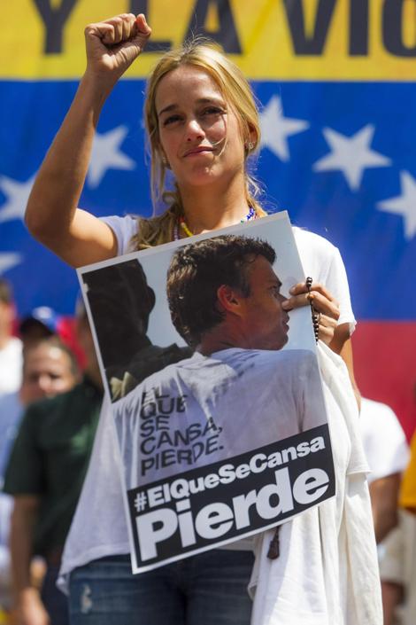 “obiettivo [è] di portare avanti la lotta del marito. La situazione in Venezuela rimane molto tesa, dopo che almeno 13 persone sono morte nelle proteste anti-Maduro e 150 sono rimaste ferite. Le manifestazioni, nate infatti in modo spontaneo contro la scarsità di beni di prima necessità e la criminalità sempre più dilagante, sono diventate il mezzo di scontro tra l’opposizione e il governo capeggiato dall’erede di Chavez. Il governo infatti controlla i proventi del petrolio. Ma l’inflazione è alle stelle e anche solo uscire di casa sta diventando sempre più pericoloso”.