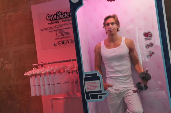 Il negozio propone maschi in carne e ossa in scatole giganti per tutti i gusti: da mister muscolo, al rocker, al surfista.