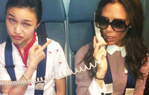 “L’equipaggio si prepari per l’atterraggio! Benvenuti a Pechino”. A scrivere così è l’ex Spice Girl Victoria Beckham su Twitter. Insieme alla frase, la moglie di David ha pubblicato sul social network una foto che la vede ritratta sul seggiolino da assistente di volo, accanto a una hostess mentre sembra parlare al telefono-speaker dell’aereo.