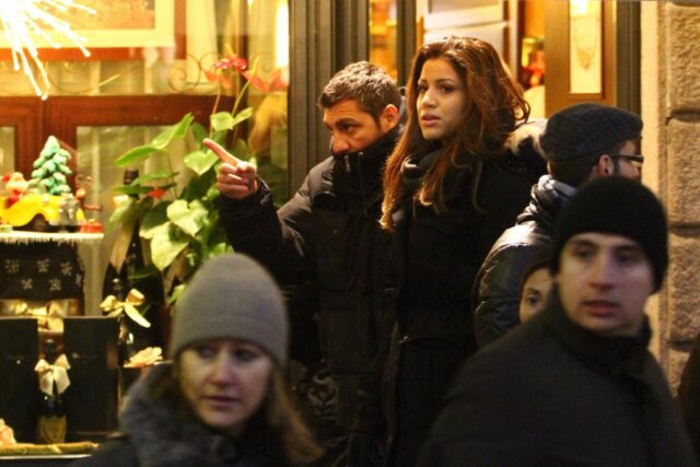 © Paolo Della Bella/LaPresse 08-12-12 Milano Gossip Christian Vieri e Nabila Chihab a passeggio nelle vie del centro,poi shopping da Dolce e Gabbana e in orologeria da Audemars Piguet prima di rilassarsi da Conti cafË Nella foto Christian Vieri e Nabila Chihab © Paolo Della Bella /LaPresse 08-12-12 Milan Gossip Christian Vieri and Nabila Chihab a walk in the town center, then shopping at Dolce and Gabbana and watches from Audemars Piguet before relaxing by Conti cafË In the picture Christian Vieri and Nabila Chihab