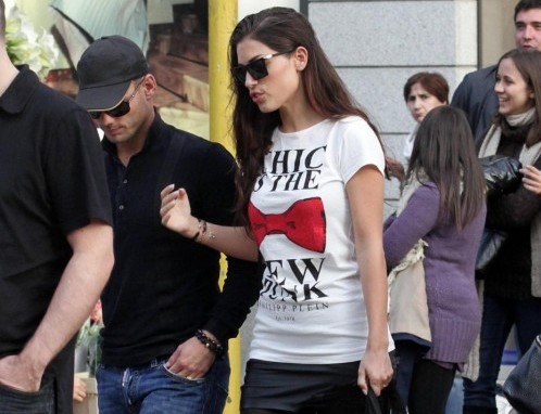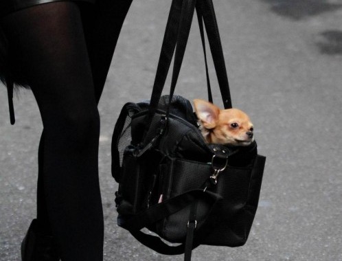 La coppia, dopo aver pranzato al ristorante Il Salumaio di via Montenapoleone, passeggia con il loro cagnolino James seduto comodamente all’interno di una borsa (LaPresse)