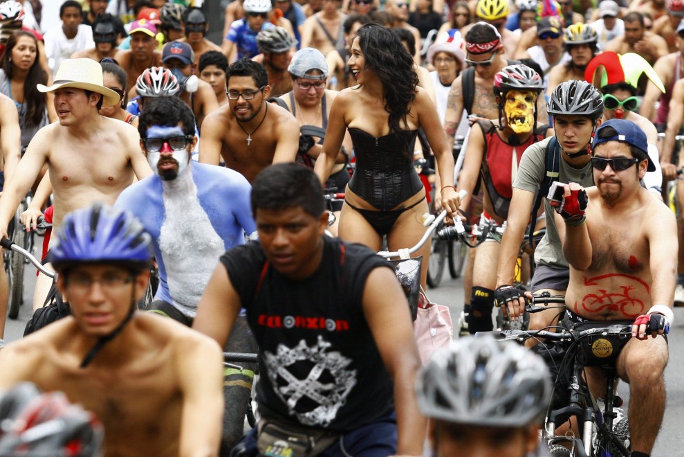 Anche quest’anno, decine di persone in 70 città di tutto il mondo si sono concesse una passeggiata in bicicletta senza abiti per sensibilizzare l’opinione pubblica sui diritti dei ciclisti e per protestare contro le auto.
