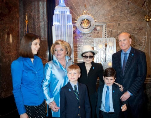 April 2, 2013 - Manhattan, New York, U.S. - YOKO ONO, global autism ambassador, and Bob and Suzanne Wright ''flip the switch'' and light the Empire State Building blue in celebration of World Autism Awareness Day and Autism Awareness Month, Tuesday, April 2, 2013. LaPresseOnly Italy