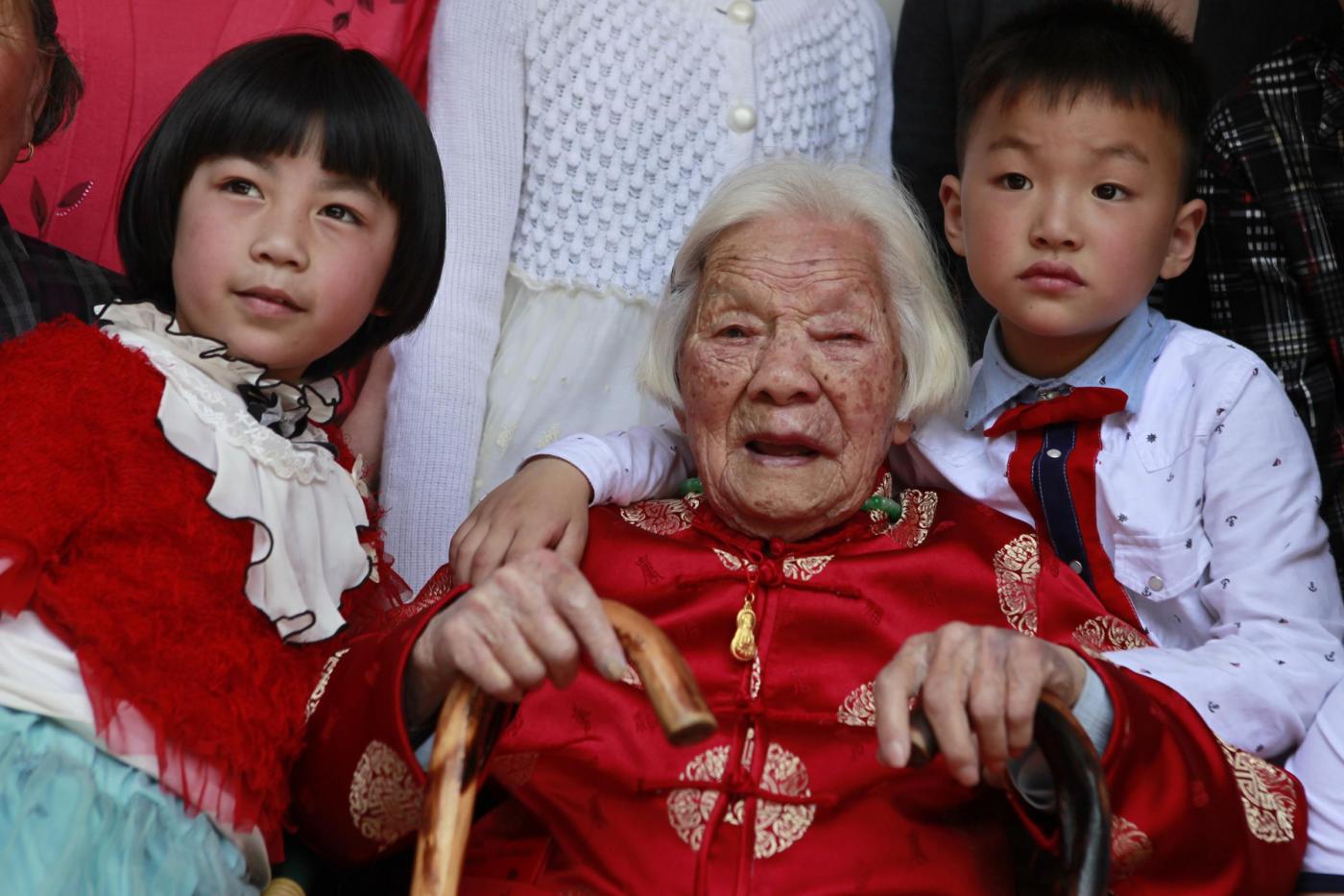 Zhu vive a Lishui, città-prefettura della Cina che si trova nella provincia dello Zhejiang. Zhu è la più longeva di Lishui.: ha quattro figlie, con la più anziana che ha 93 anni. La sua famiglia al completo racchiude la bellezza di cinque generazioni (foto LaPresse)