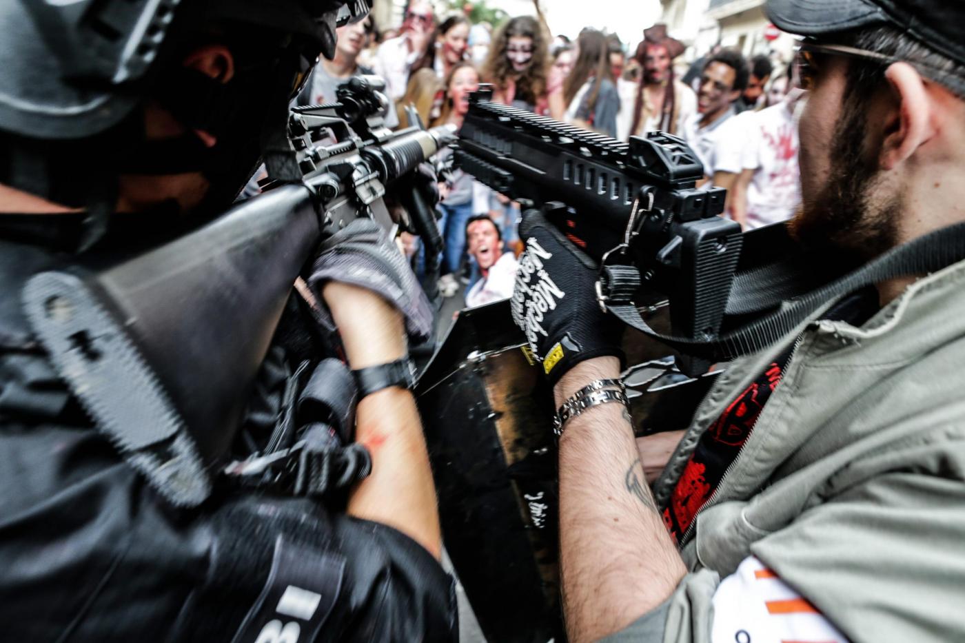 L’anno scorso, la marcia aveva raccolto circa 2mila partecipanti. “Rispetto al primo Zombie Walk organizzato nel 2010, è aumentato di dieci volte il numero dei partecipanti” ha concluso Bonhomme. Anche i truccatori messi a disposizione dell’evento hanno lavorato a tempo pieno, truccando almeno 350 persone (foto LaPresse):