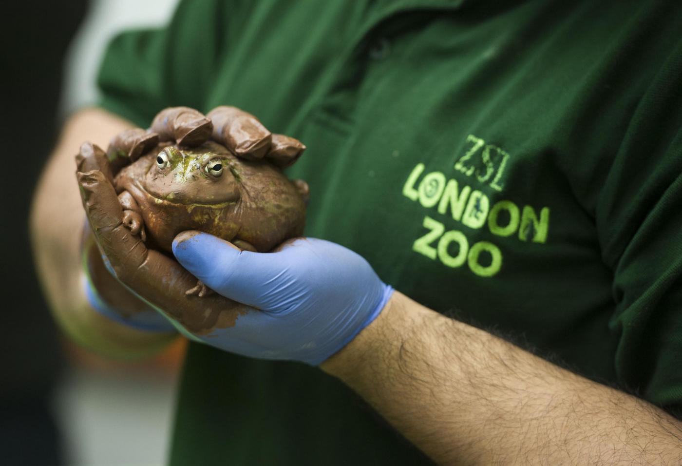 Jan. 3, 2013 - London, London, UK - London, UK. Keeper Grant Kother holds a Bullfrogat the annual stocktake of every animal at London Zoo, Regents Park, London. The compulsory count is required as part of the zoo's licence and every creature, great or small will be accounted for..Photo credit : Simon Jacobs/LNP