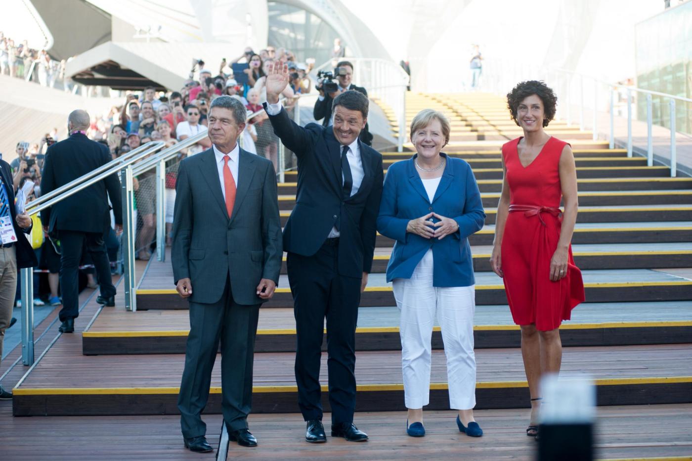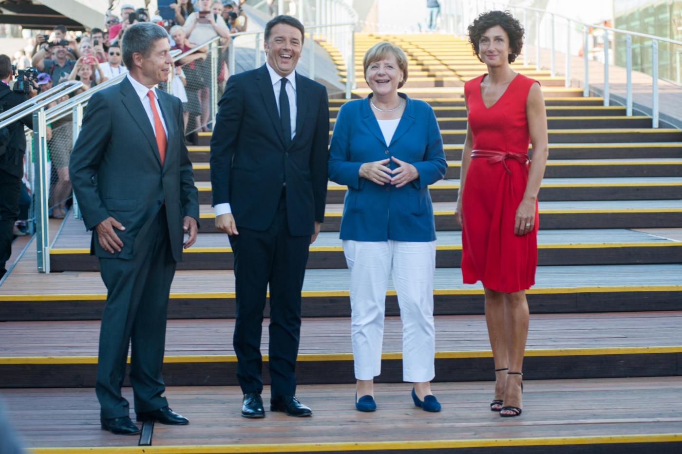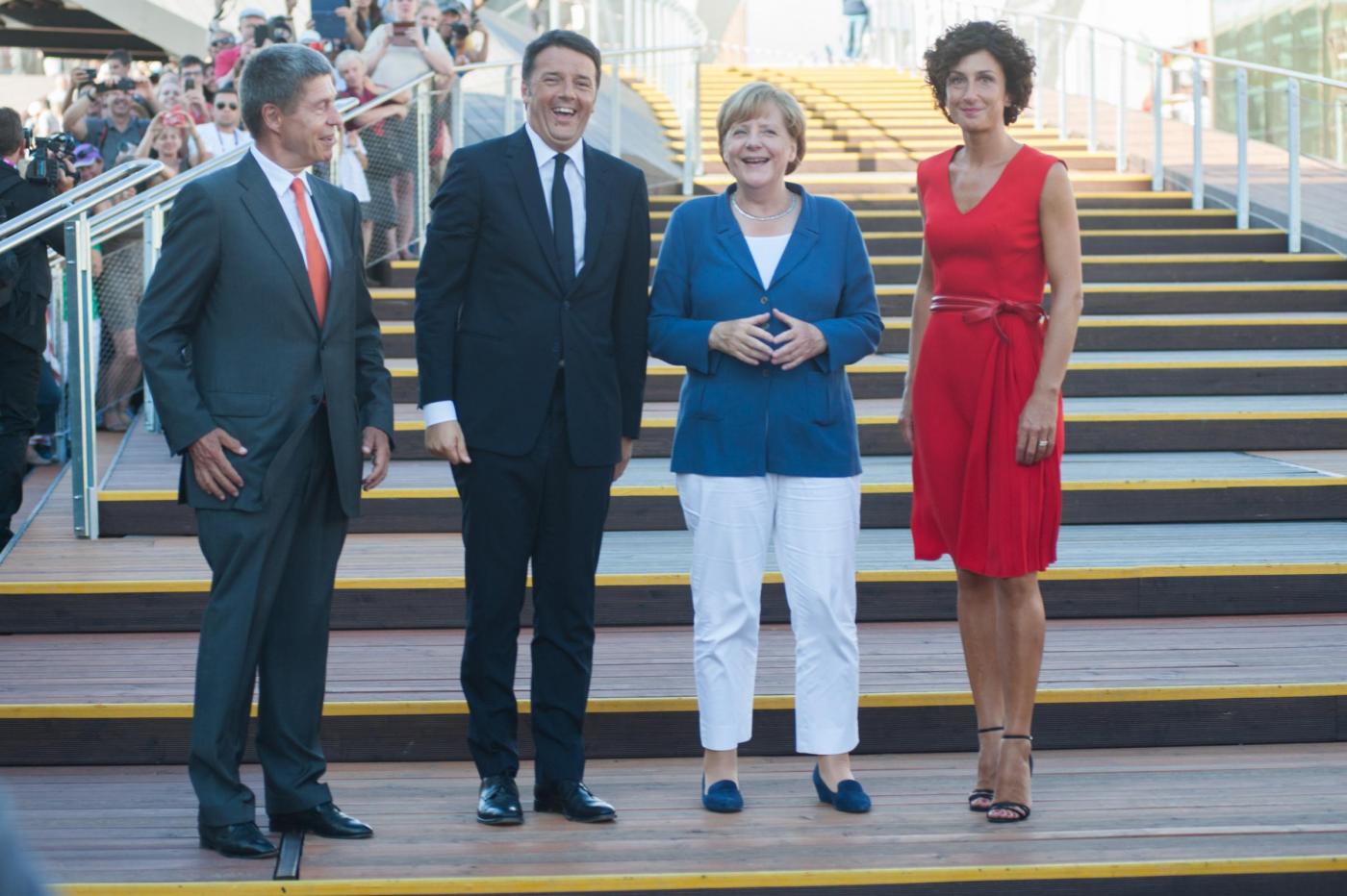 Foto Piero Cruciatti / LaPresse 17-08-2015 Milano, Italia Cronaca Angela Merkel visita Expo Milano 2015 Nella Foto: Joachim Sauer, Matteo Renzi, Angela Merkel, Agnese Renzi Photo Piero Cruciatti / LaPresse 17-08-2015 Milano, Italy Angela Merkel visits Expo Milano 2015 News In the Photo:Joachim Sauer, Matteo Renzi, Angela Merkel, Agnese Renzi