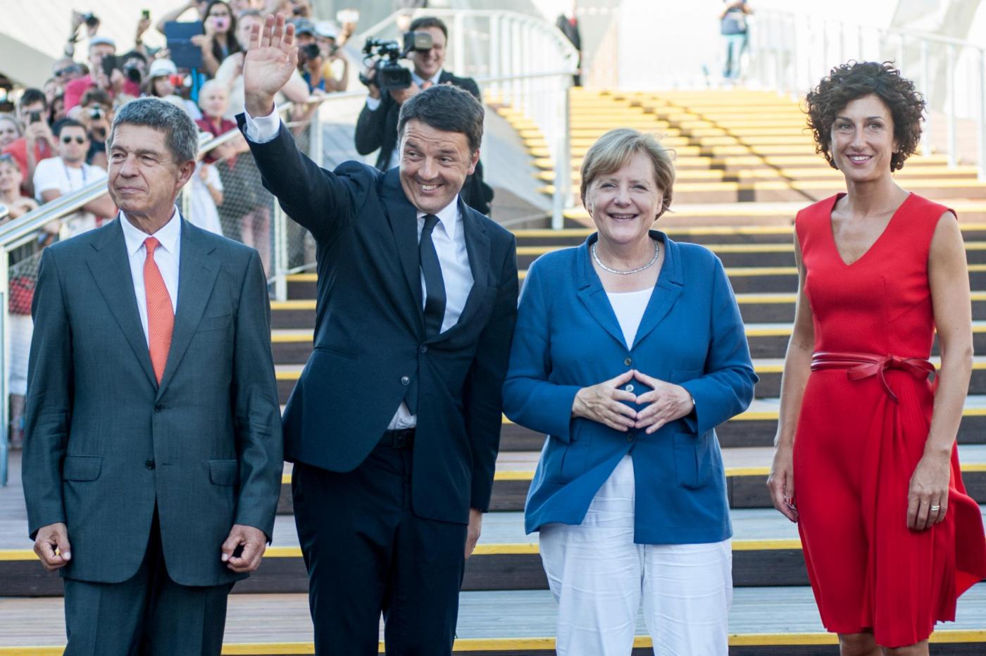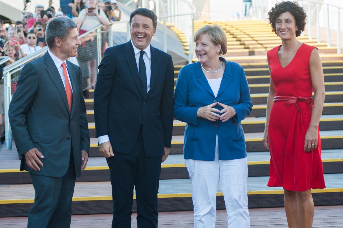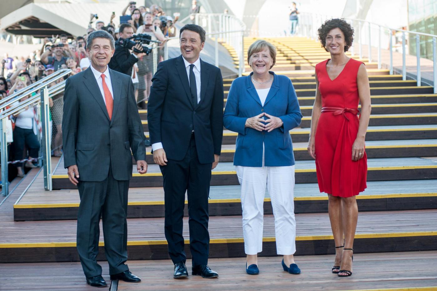 Foto Piero Cruciatti / LaPresse 17-08-2015 Milano, Italia Cronaca Angela Merkel visita Expo Milano 2015 Nella Foto: Joachim Sauer, Matteo Renzi, Angela Merkel, Agnese Renzi Photo Piero Cruciatti / LaPresse 17-08-2015 Milano, Italy Angela Merkel visits Expo Milano 2015 News In the Photo:Joachim Sauer, Matteo Renzi, Angela Merkel, Agnese Renzi