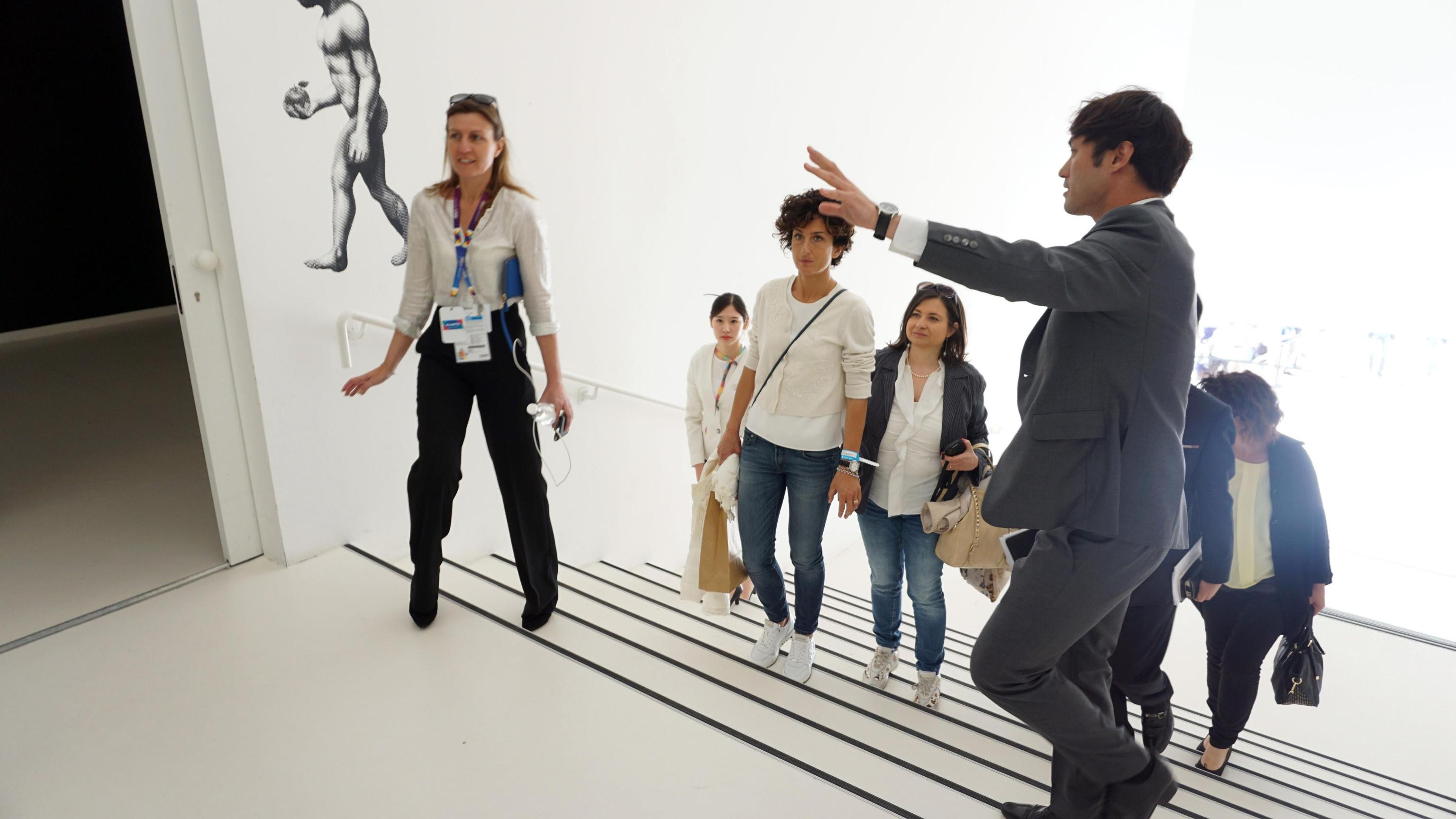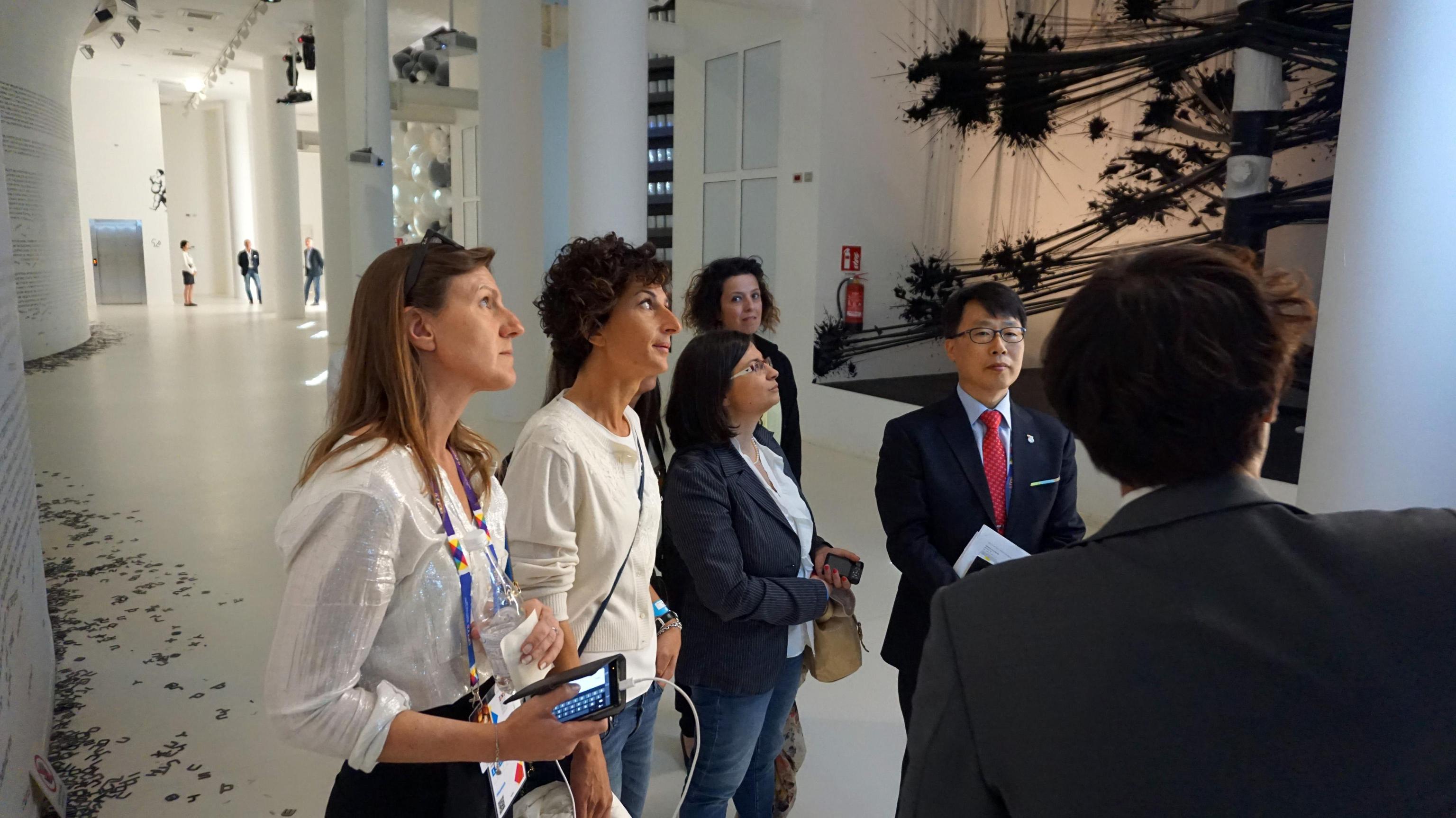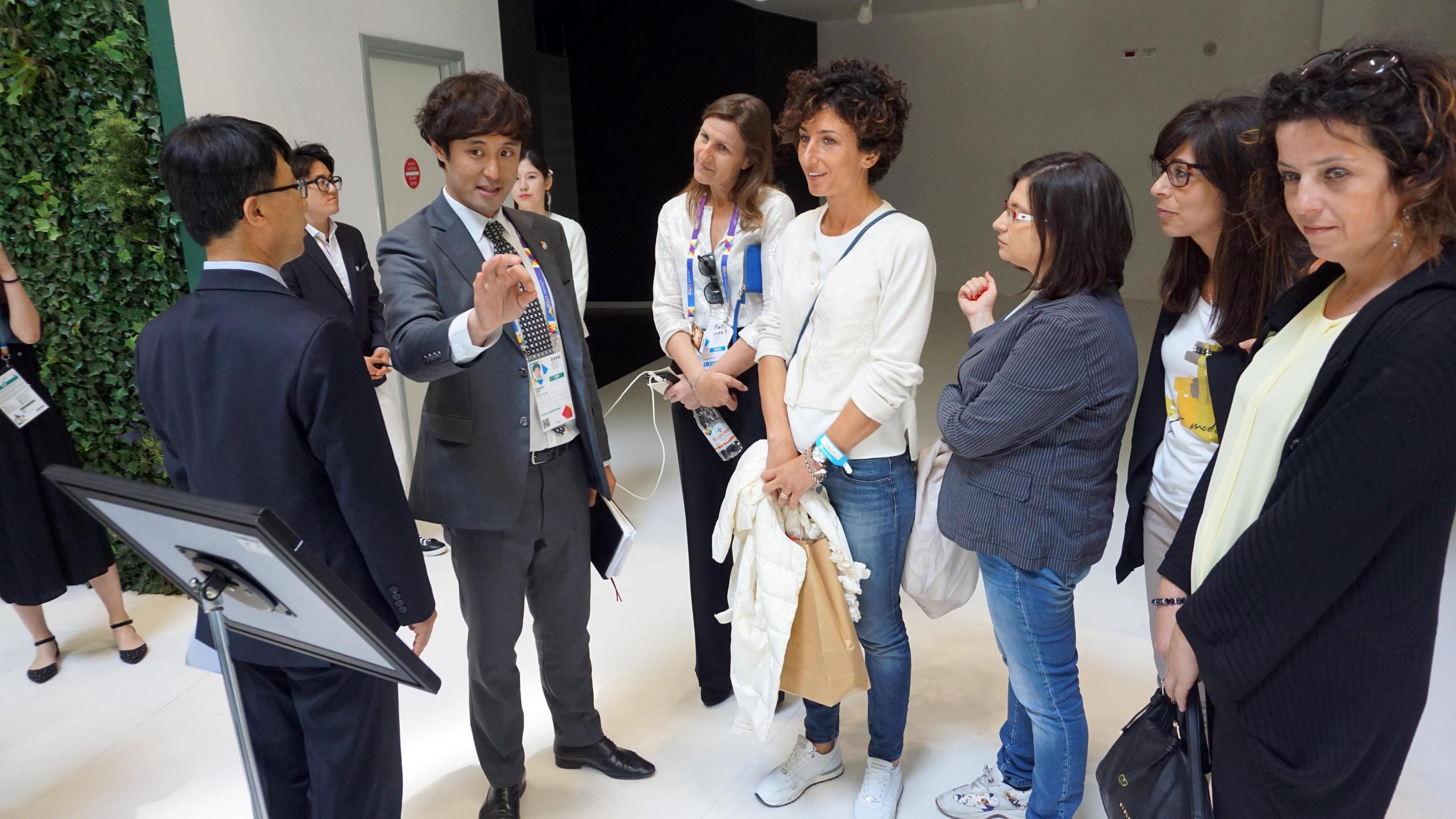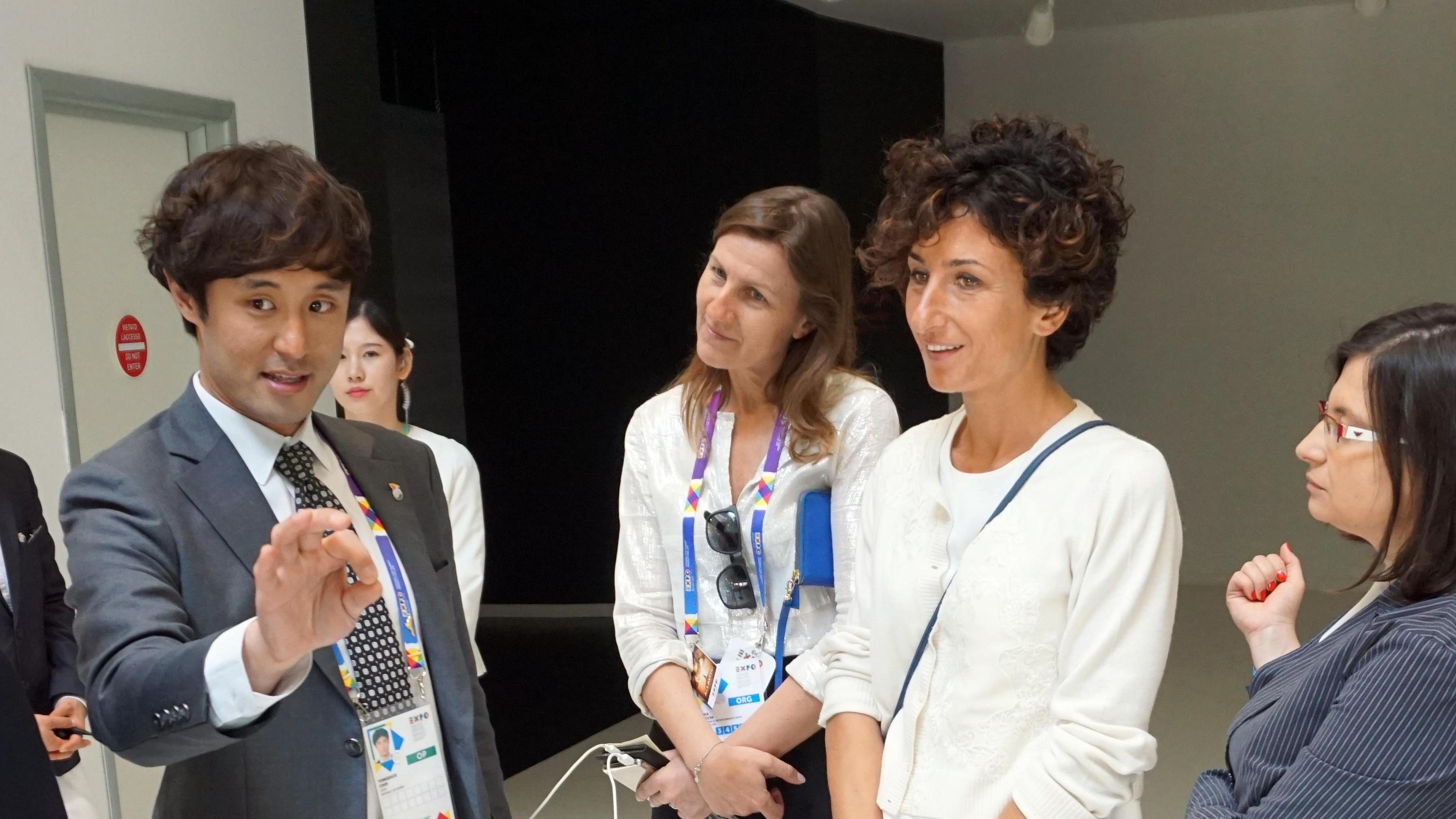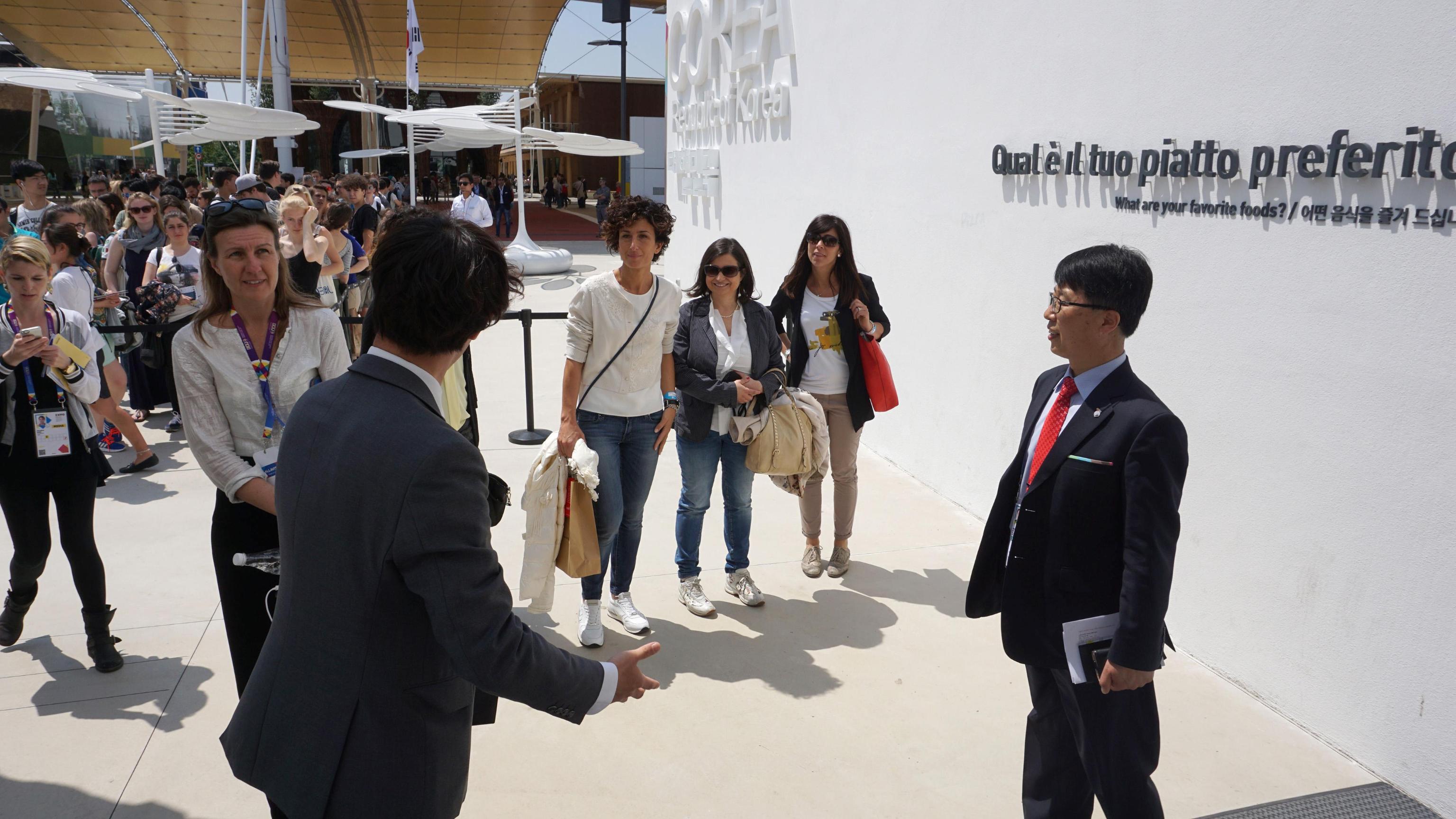 Agnese Landini, wife of Italian PM Matteo Renzi, visited today South Korea Pavilion with director Deokhyun Jo (in the pictures with red tie). Milan, May 28th 2015. ANSA/KOREA PAVILION EXPO MILAN +++ ANSA PROVIDES ACCESS TO THIS HANDOUT PHOTO TO BE USED SOLELY TO ILLUSTRATE NEWS REPORTING OR COMMENTARY ON THE FACTS OR EVENTS DEPICTED IN THIS IMAGE; NO ARCHIVING; NO LICENSING +++