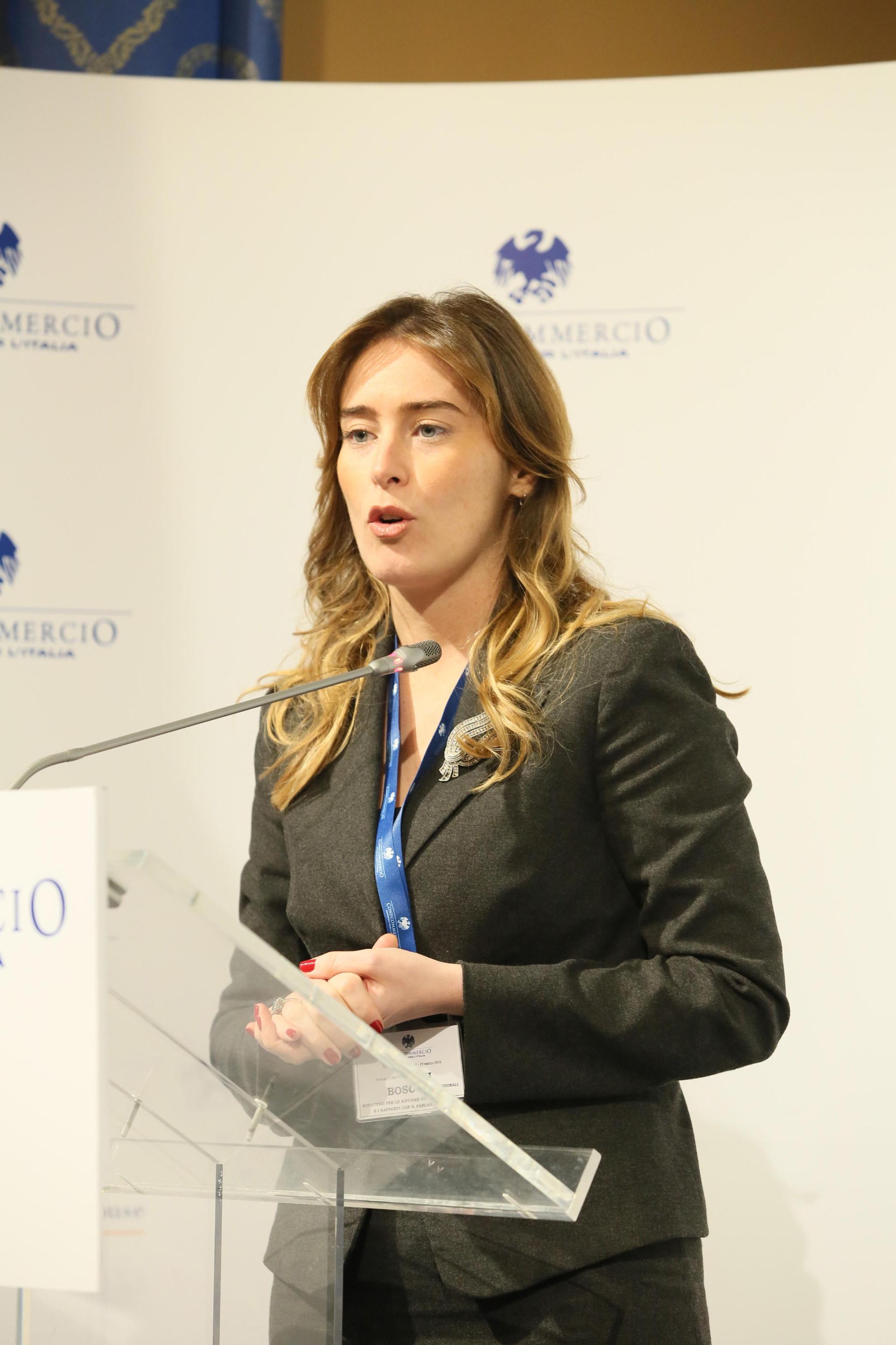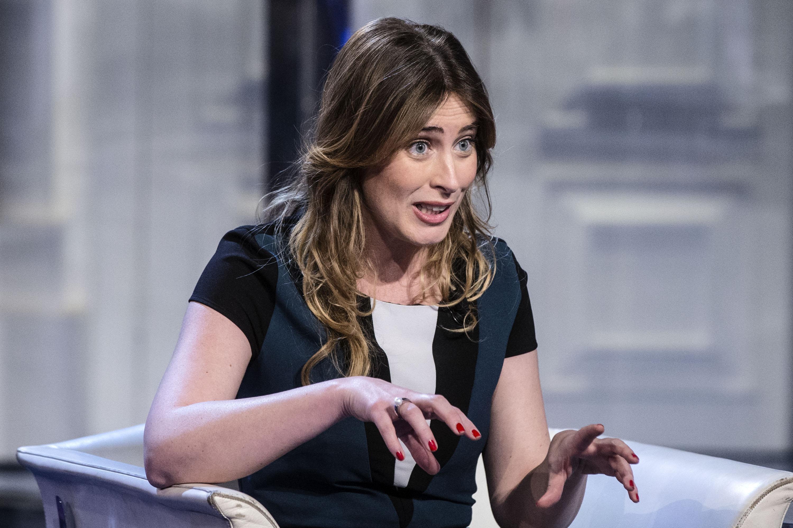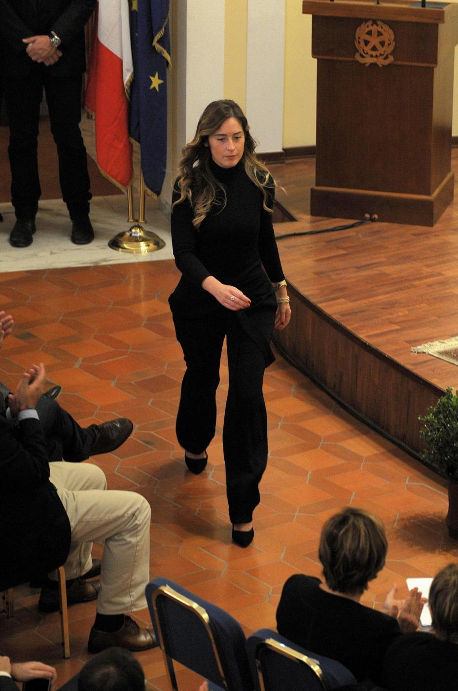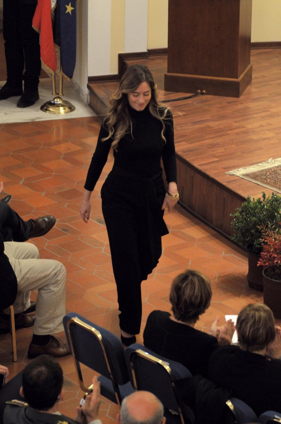 Maria Elena Boschi, total black a Porta a PortaMaria Elena Boschi, total black a Porta a Porta