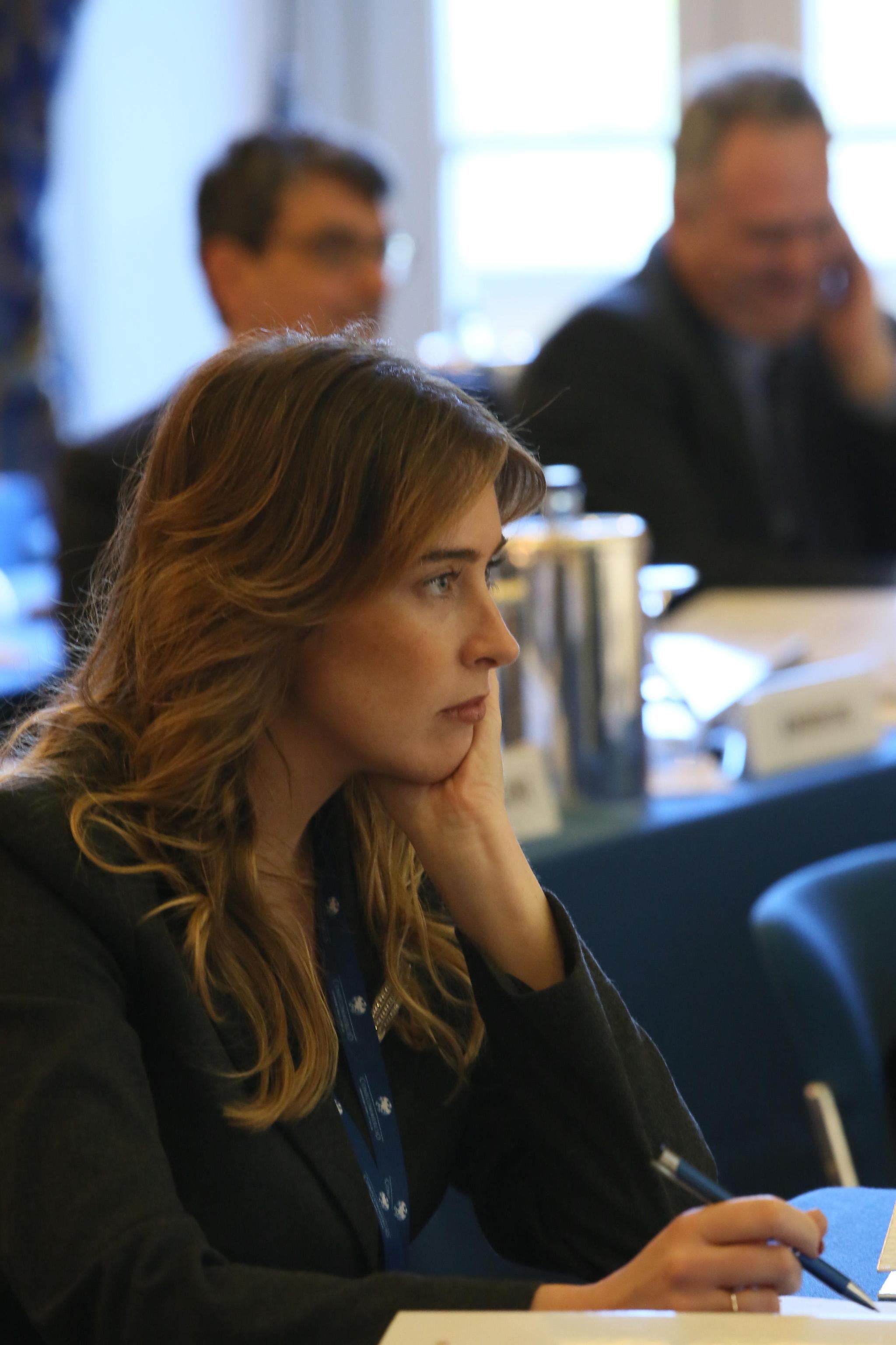 Il Ministro delle Riforme Maria Elena Boschi in Senato durante il voto finale alla Riforma Costituzionale, Roma 13 Ottobre 2015, ANSA/GIUSEPPE LAMI