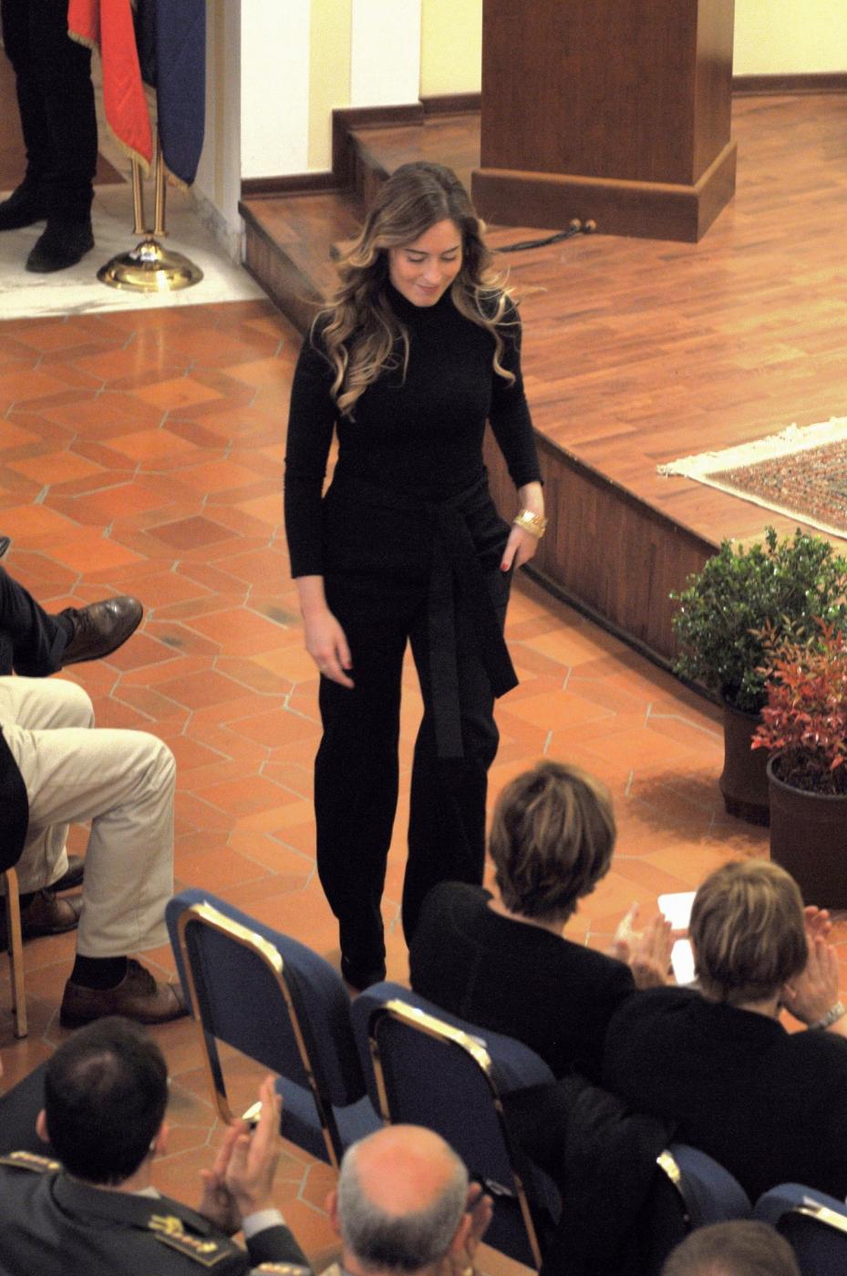 Maria Elena Boschi, total black ad Arezzo
