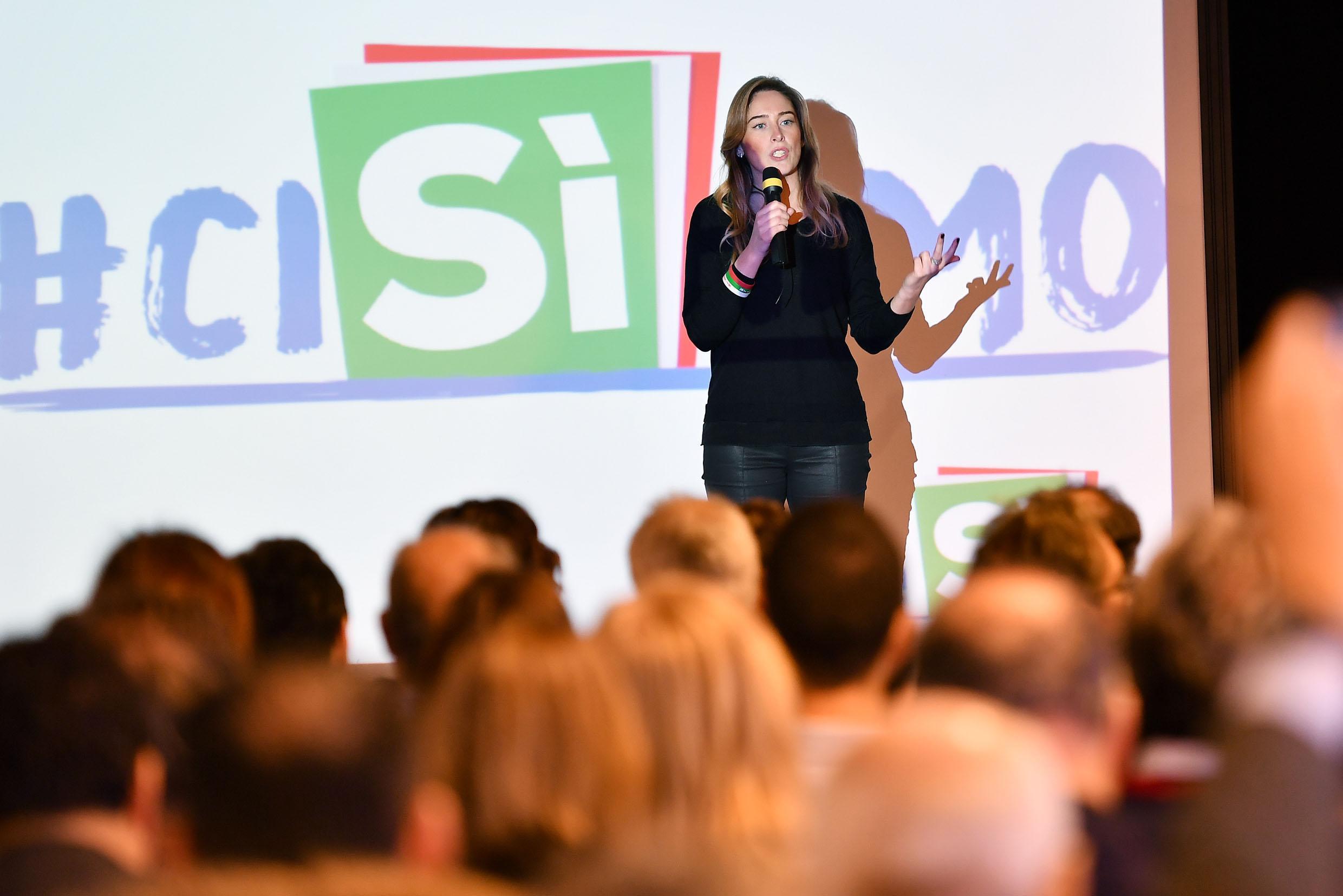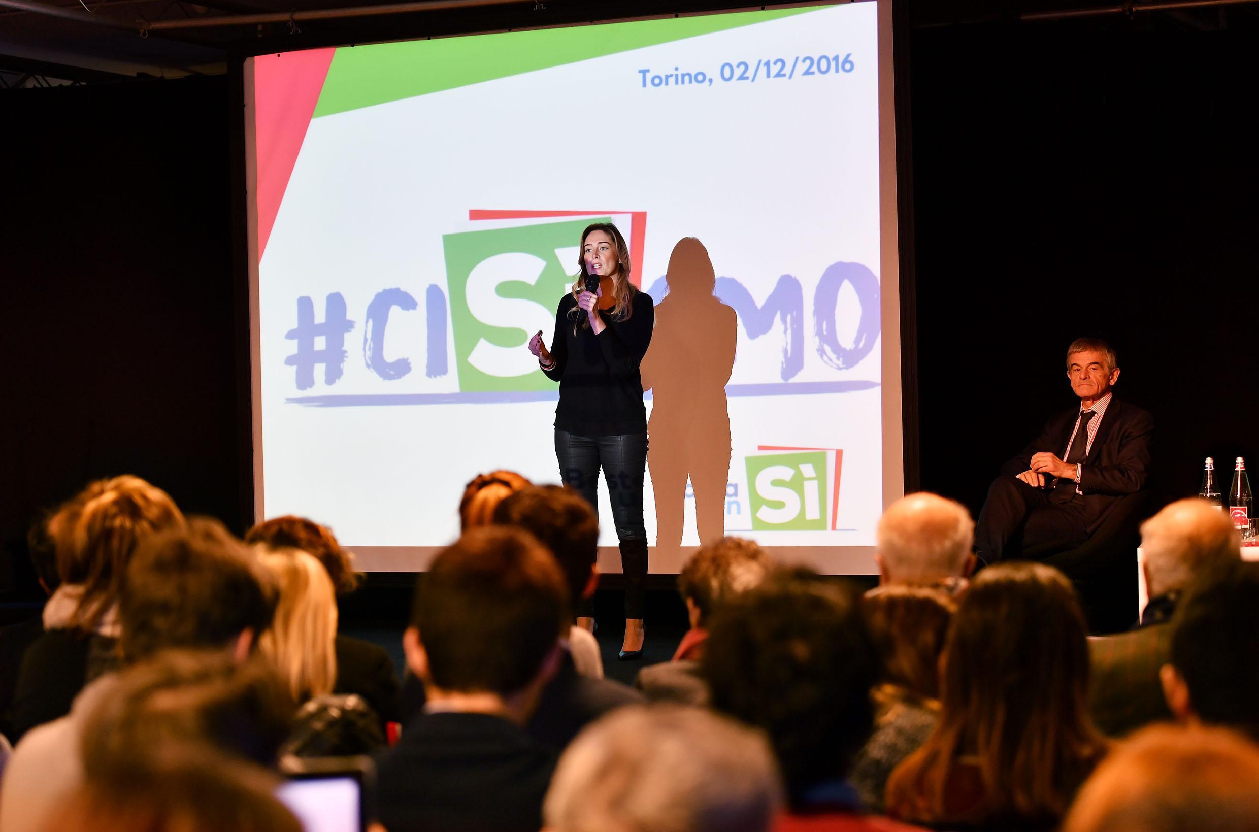 La ministra per le Riforme Maria Elena Boschi durante il discorso per la campagna "Basta un SI" in occasione del referendum Costituzionale presso Piazza Dei Mestieri, Torino, 2 Dicembre 2016. ANSA/ALESSANDRO DI MARCO