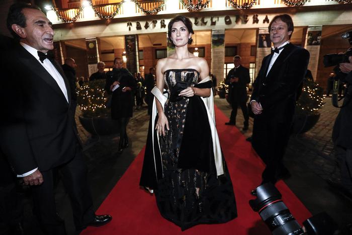 La sindaca di Roma Virginia Raggi al teatro dell'Opera per l'apertura della stagione lirica con ''La Damnation de Faust'' di Hector Berlioz, Roma 12 dicembre 2017. ANSA/GIUSEPPE LAMI