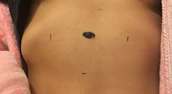 Ora Cloe ha una cicatrice all’altezza dello stomaco. Al Daily Mail racconta di aver cominciato a notare il neo già dalla scorsa estate e di non essersene preoccupata più di tanto fino, appunto, a gennaio scorso.