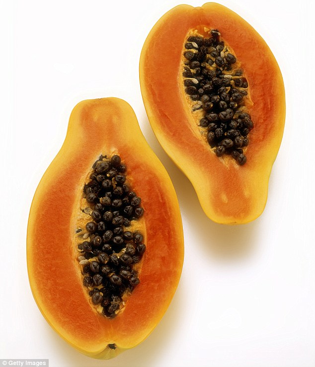 La papaya ha concentrazioni particolarmente elevate di vitamina C che svolge un ruolo cruciale nella regolazione della produzione di collagene. La vitamina C ha anche ottimi benefici per far guarire la pelle e per curare capelli e unghie. La papaia è un potente antiossidante. In questo caso, piuttosto che spalmata deve essere mangiata. In questo caso aumenta la quantità di vitamina C rallentando così i radicali liberi, colpevoli dei segni del tempo. La papaia aiuta anche a proteggere dai danni dei raggi ultravioletti. ma come deve essere mangiata? Come per tutti gli alimenti anti-invecchiamento, maggiori benefici si ottengono mangiandola in “forma grezza”.
