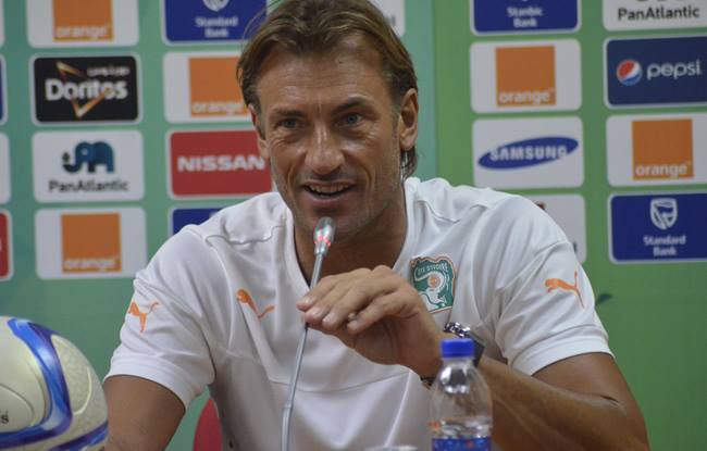 Ivory Coast's head coach Herve Renard of France (L) looks on during their 2015 African Cup of Nations Group D soccer match against Guinea in Malabo January 20, 2015.REUTERS/Amr Abdallah Dalsh (EQUATORIAL GUINEA - Tags: SPORT SOCCER)